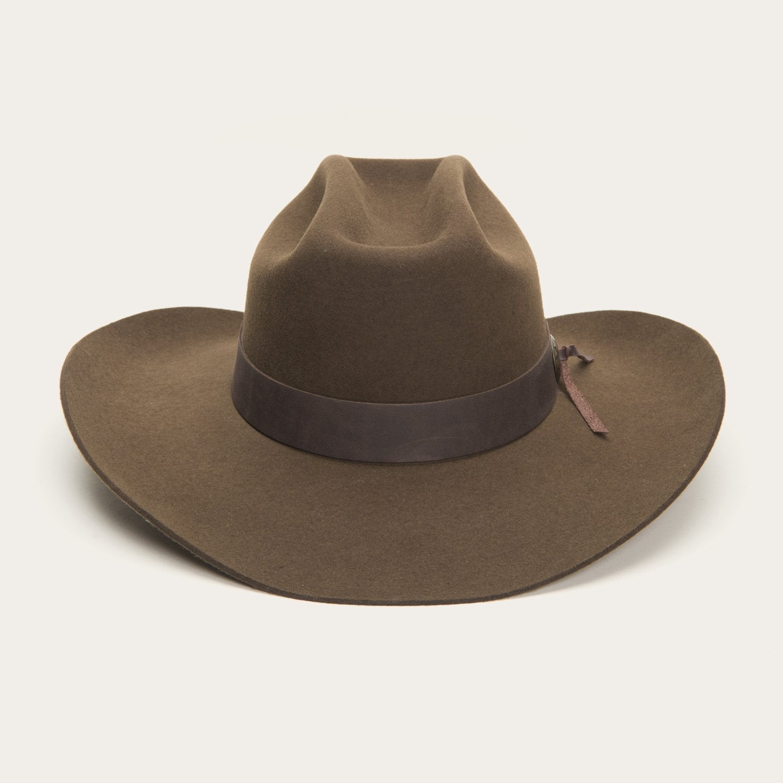 As John Wayne said, "Courage is being scared to death, and saddling up anyway." Scared to death or not, in the 11 Stageline-part of It's John Wayne collection-you'll be ready to ride. In a deep oak color, the leather band, timeless fur felt construction, and Western detailing of this hat makes it a legend in the making. Satin crown lining under a cattleman crown.