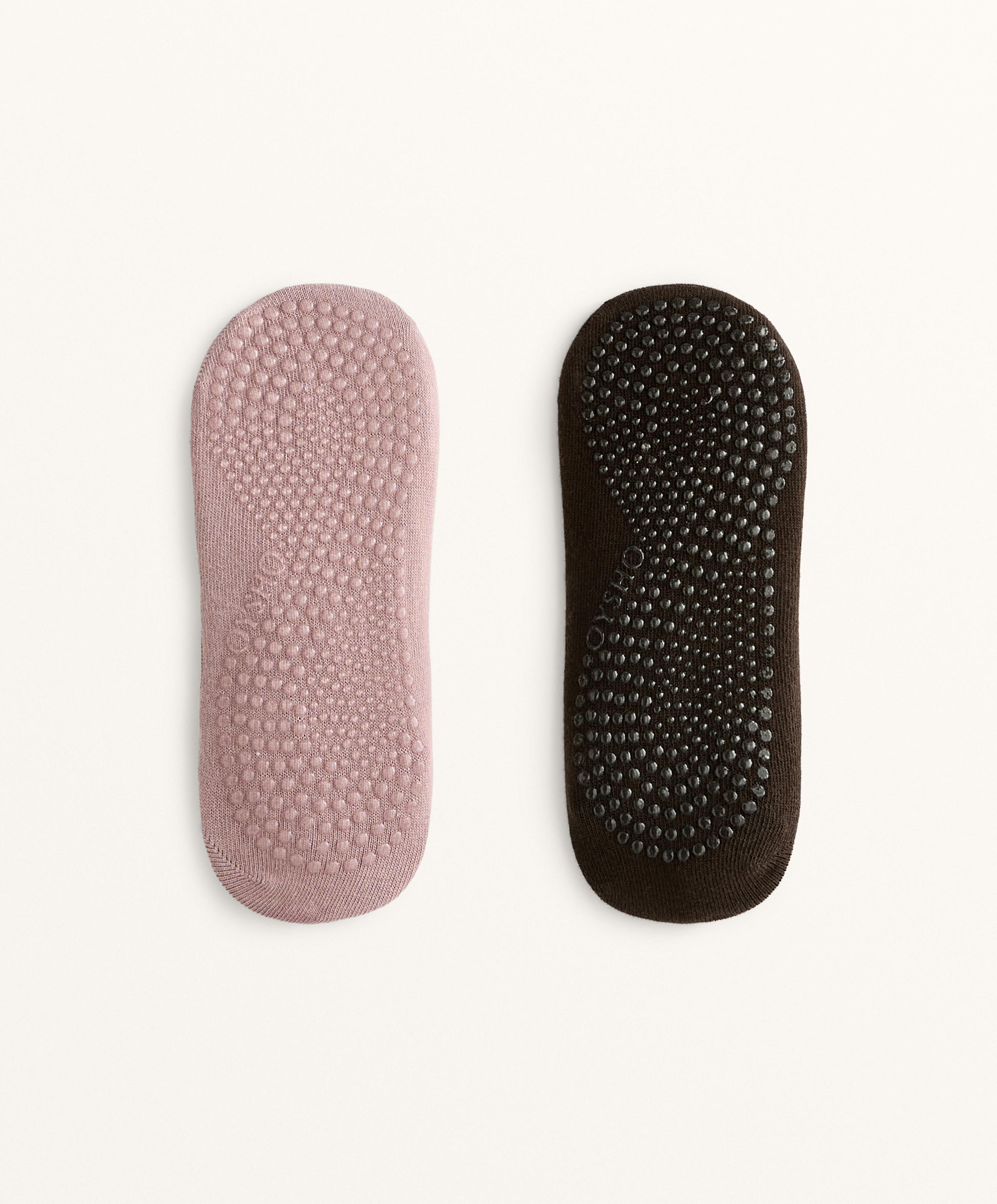 Ref. 3603/490/633 Two-pack of cotton-blend socks for studio Sports such as yoga and pilates. Featuring two crossed elastic straps. Flat seams and non-slip silicone on the sole to prevent the sock from moving. Shaped for the left and right foot for a better fit.Materials and care instructions
