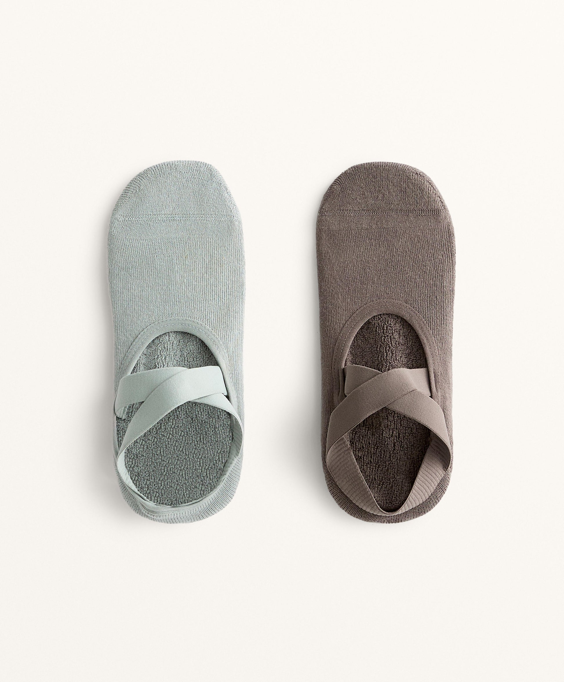 2 pairs of cotton blend yoga and Pilates socks with crossover straps and padding