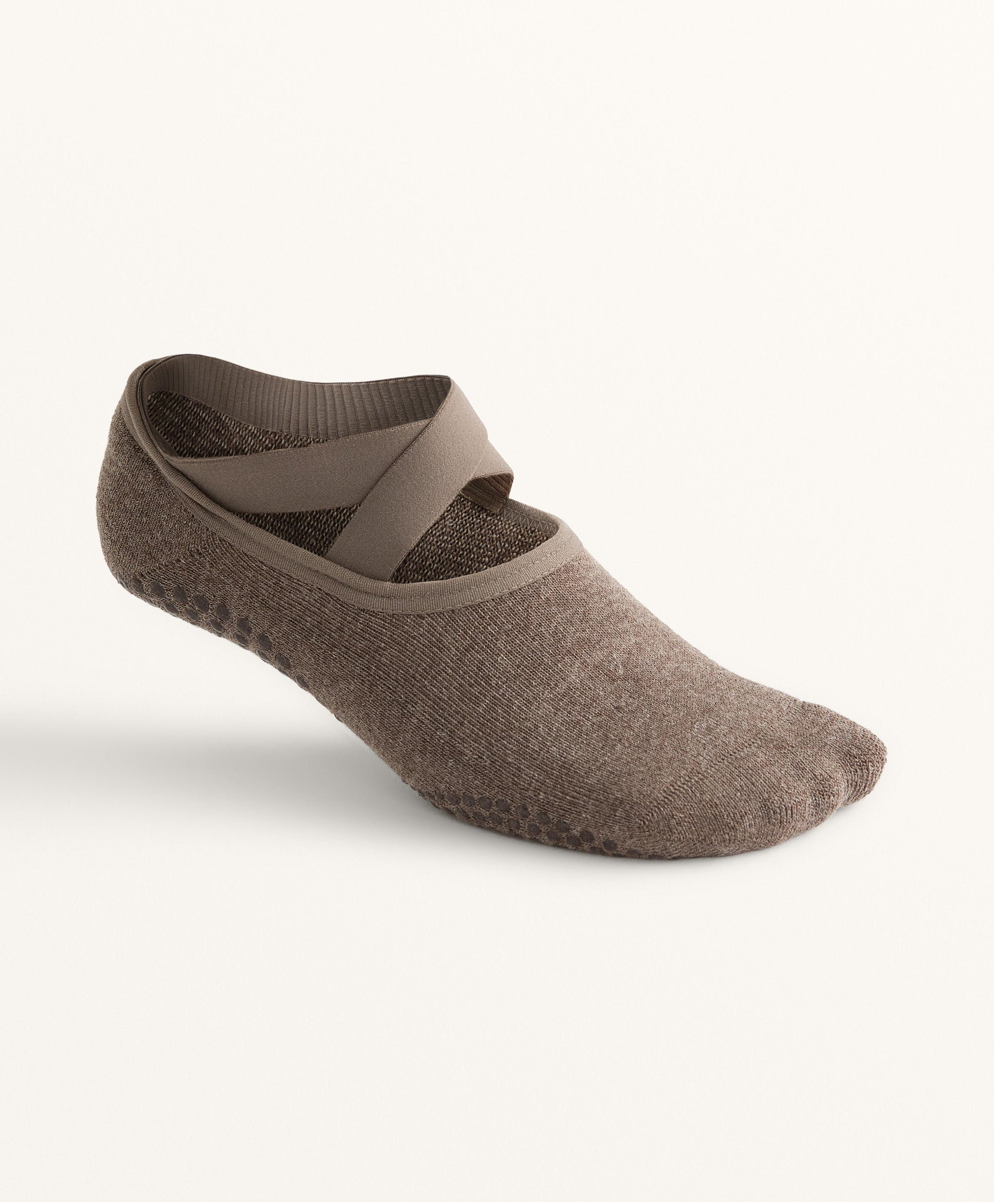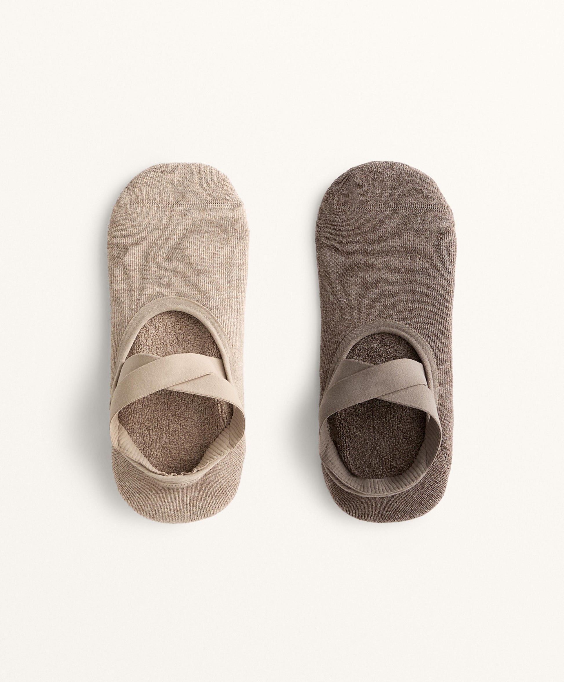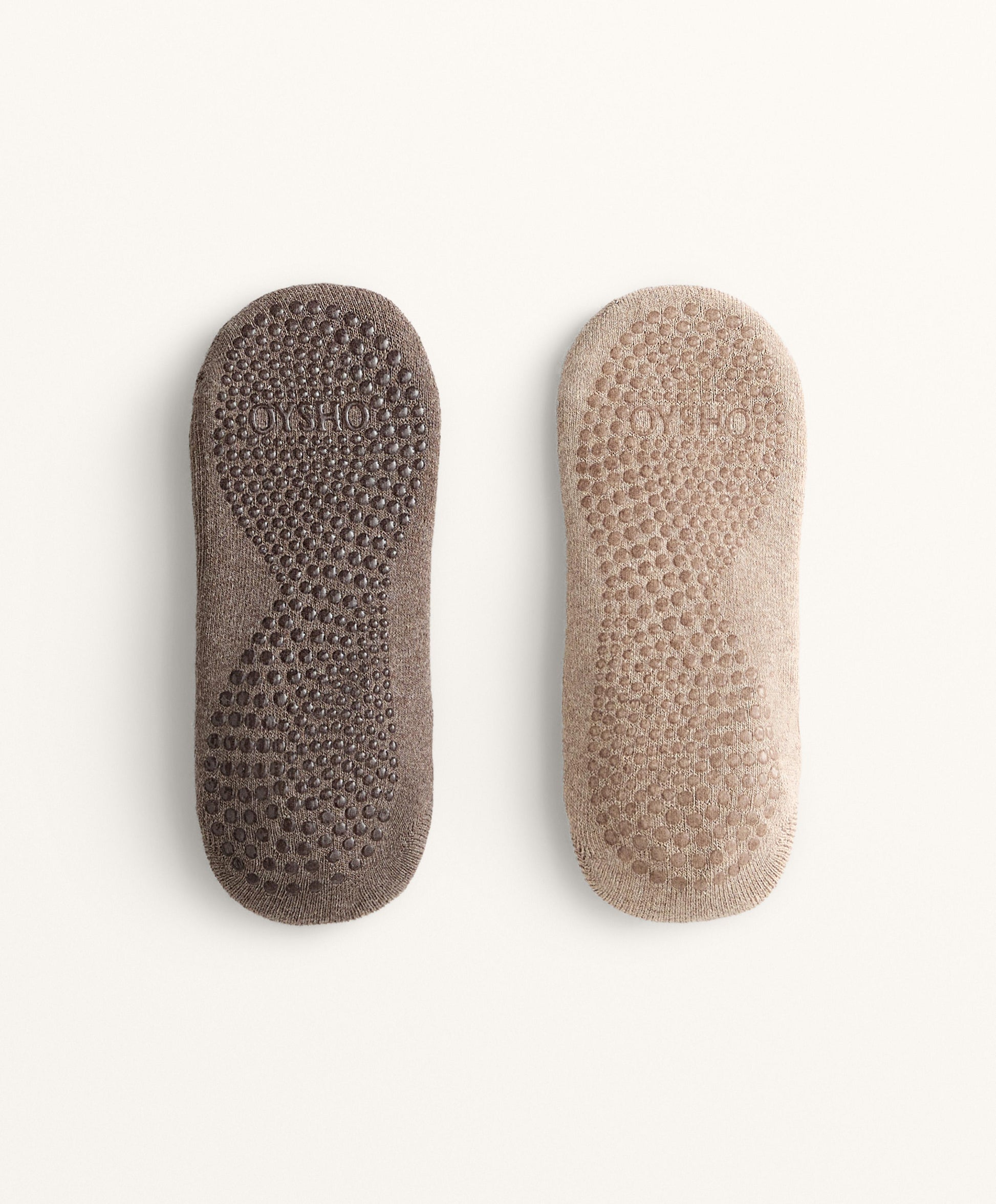 Ref. 3605/490/719 Two-pack of cotton-blend socks for studio Sports such as yoga and Pilates. Featuring two crossed elastic straps and padding to mitigate impact. Flat seams and non-slip silicone on the sole to prevent the sock from moving. Shaped for the left and right foot for a better fit.Materials and care instructions