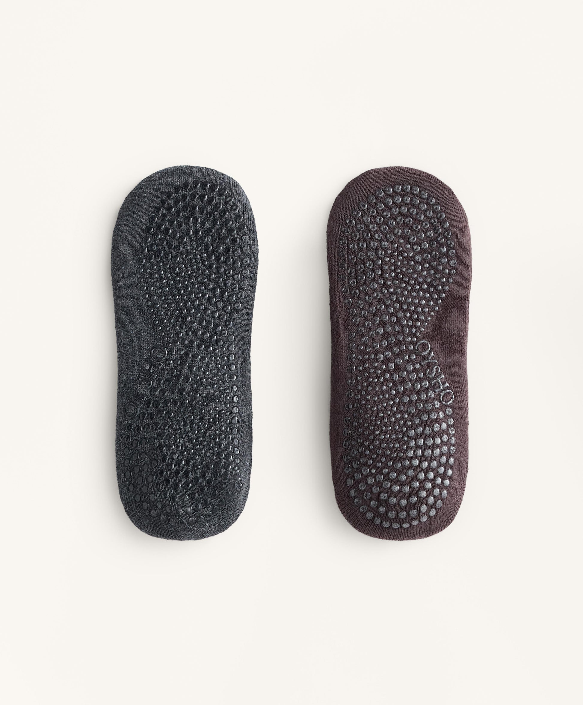Ref. 3625/490/816 Two-pack of cotton blend socks for studio Sports such as yoga and pilates. Featuring two crossed elastic straps and cushioning to mitigate impact. Flat seams and non-slip silicone on the sole to prevent the sock from moving. Shaped for the left and right foot for a better fit.Materials and care instructions