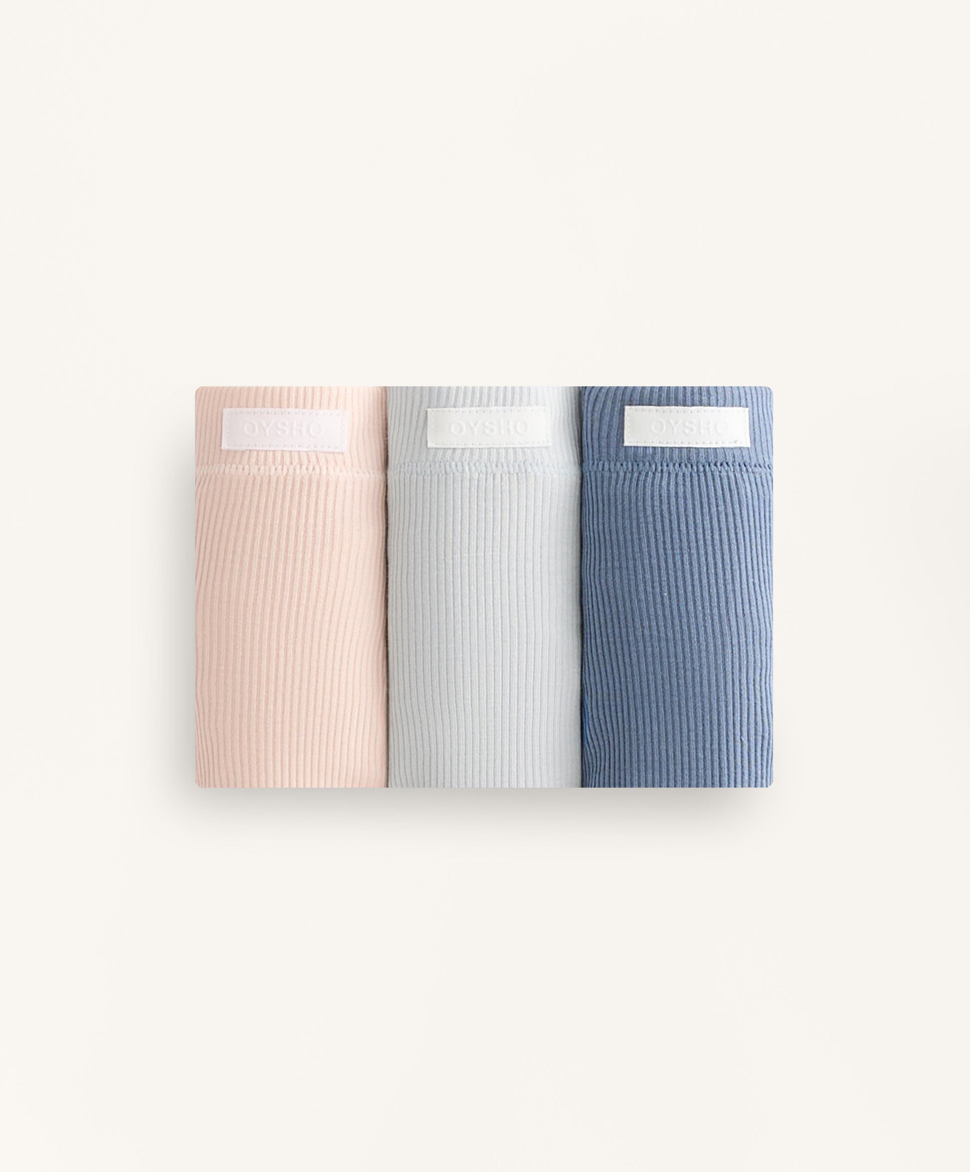 Ref. 2844/564/920 Three-pack of rib-knit thongs in a cotton blend in various plain colours. Elasticated waistband and logo detail.Materials and care instructions