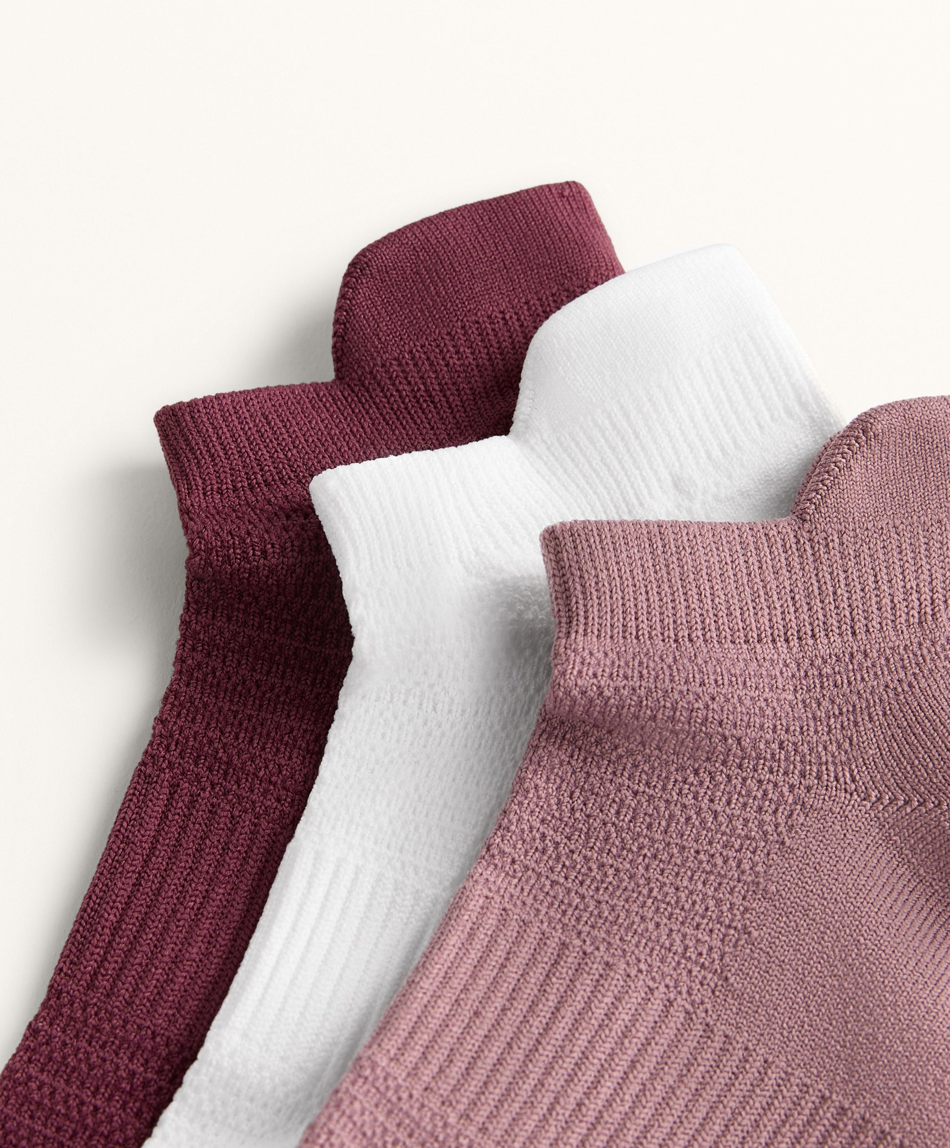 Ref. 2528/490/950 Pack of 3 pairs of sneaker socks in a polyamide blend with a visible heel tab. Featuring flat seams, mesh at the instep and arch support for enhanced grip.Materials and care instructions
