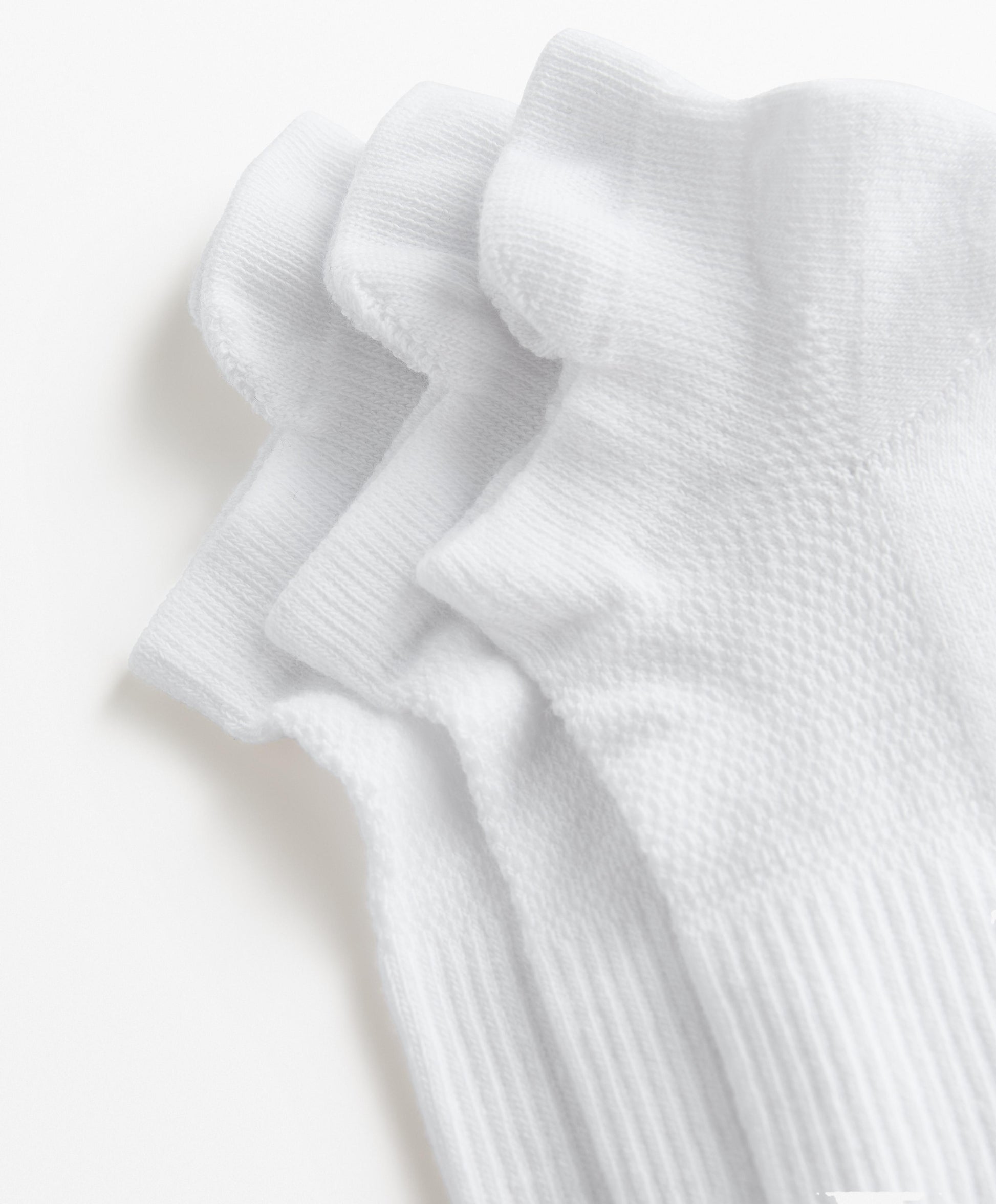 Ref. 2870/490/250 Pack of 3 pairs of sports sneaker cotton-blend socks with visible tab at the heel. Featuring flat seams, mesh on the instep and arch support for added grip.Materials and care instructions