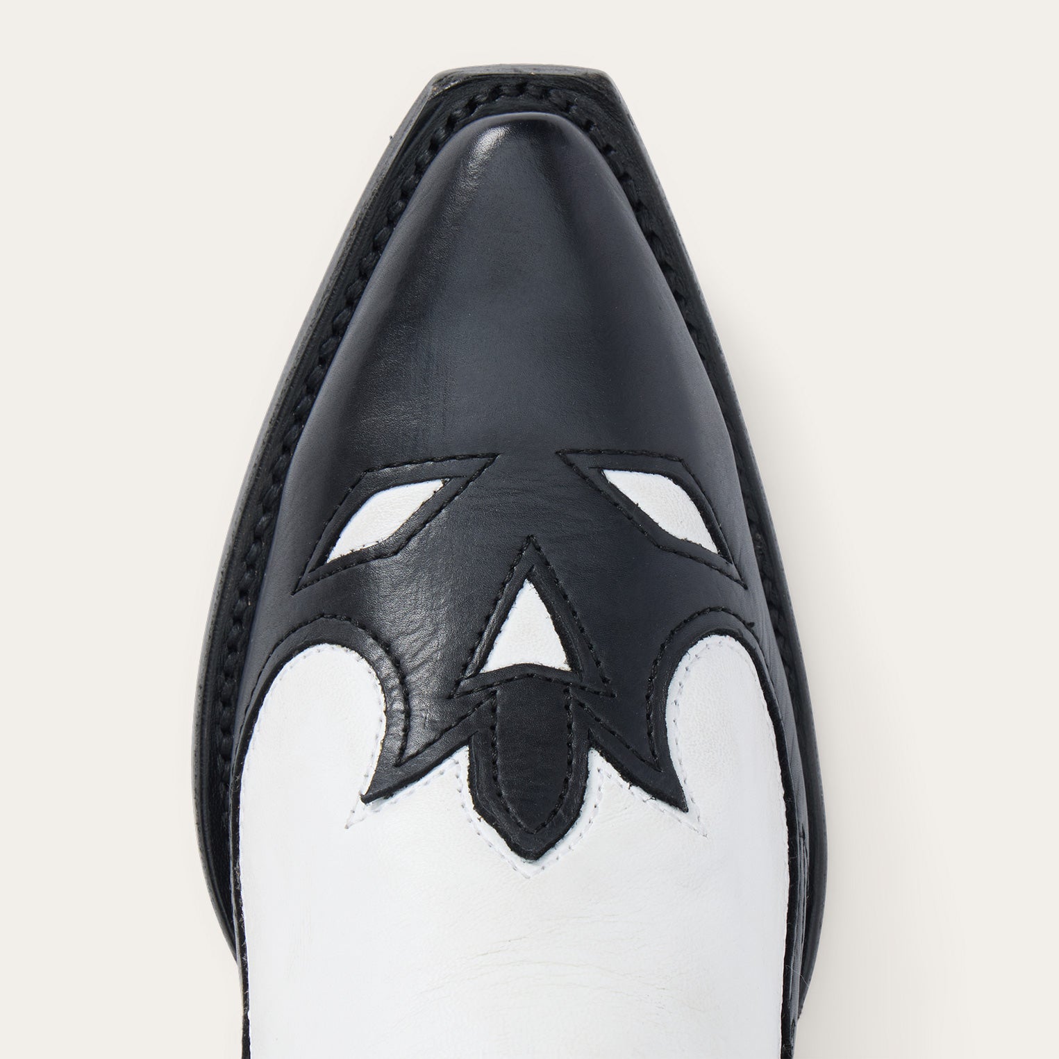 The Ariana Boot has a leather wingtip vamp and a 15" embroidered shaft with vintage-inspired stitching and flower underlay. It features a ship toe-a statement-making style-and a stacked leather cowboy heel. Its quality construction includes single welt leather soles, brass nails and handmade lemonwood pegs that will expand and contract with any moisture the boot may encounter. Premium leather lining and a cushioned leather insole ensure heel-to-toe comfort in every step.