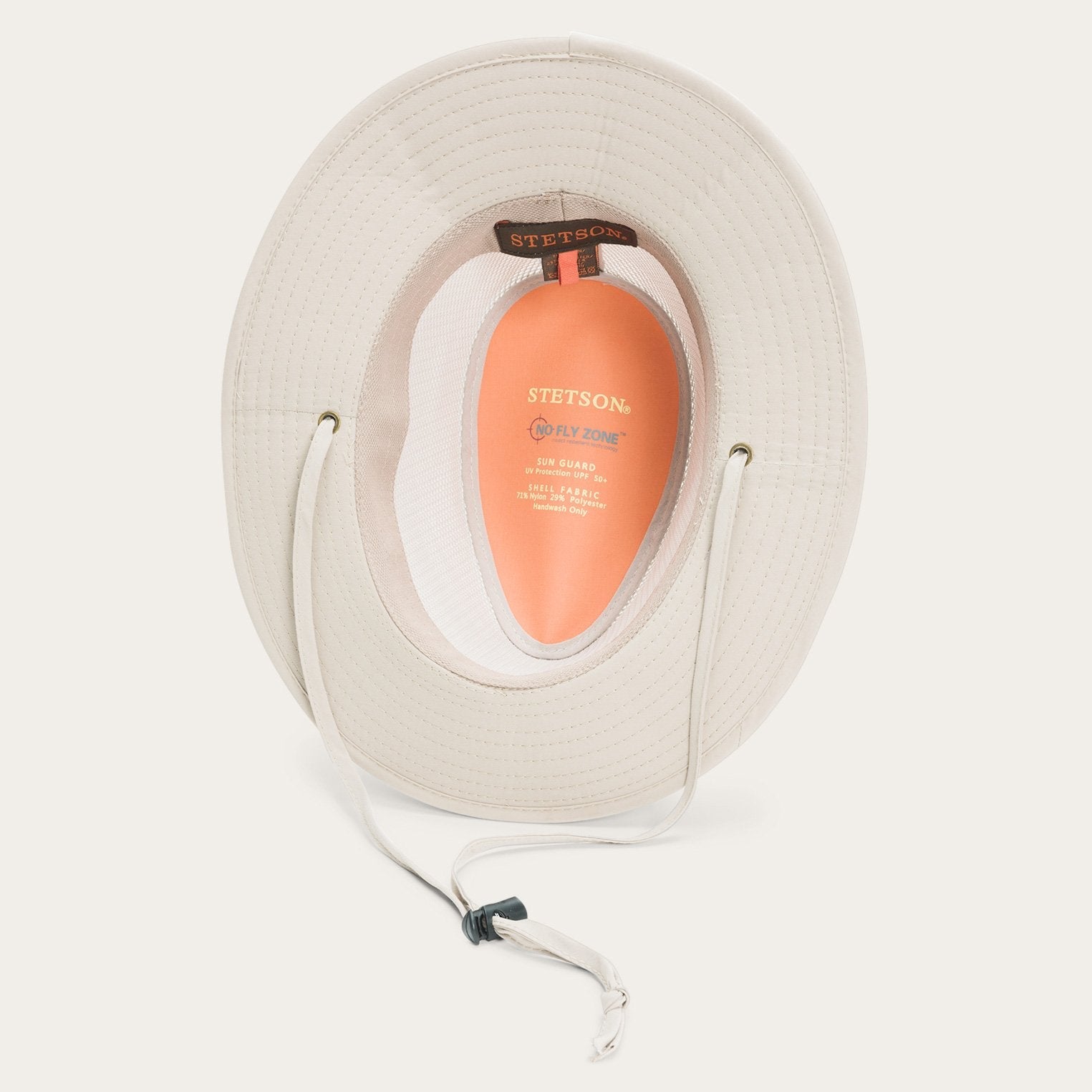 The Berghund No Fly Zone Mesh Safari Hat is ideal protection from the sun and stinging pests; lightweight and easy to pack so you can bring it anywhere. Constructed of nylon and polyester, the Berghund features the bug repellent properties of No Fly Zone technology, a sun shielding brim and an adjustable toggle chin cord.