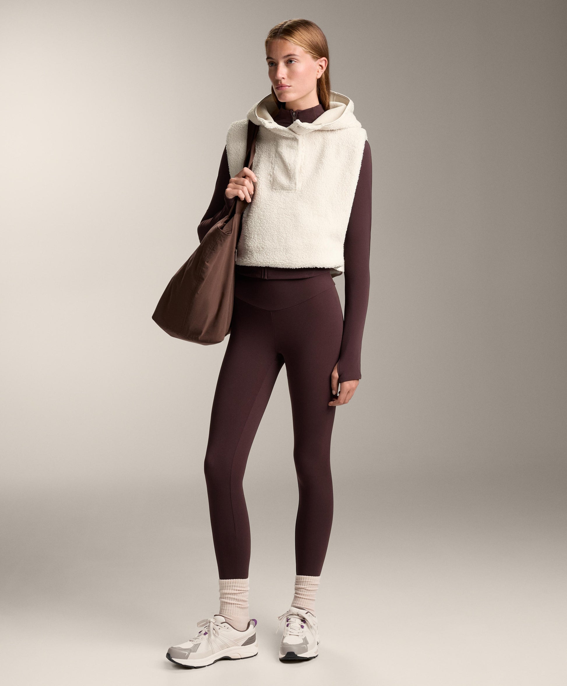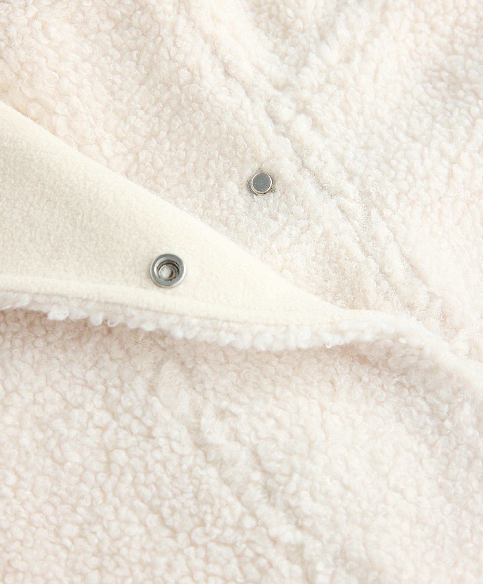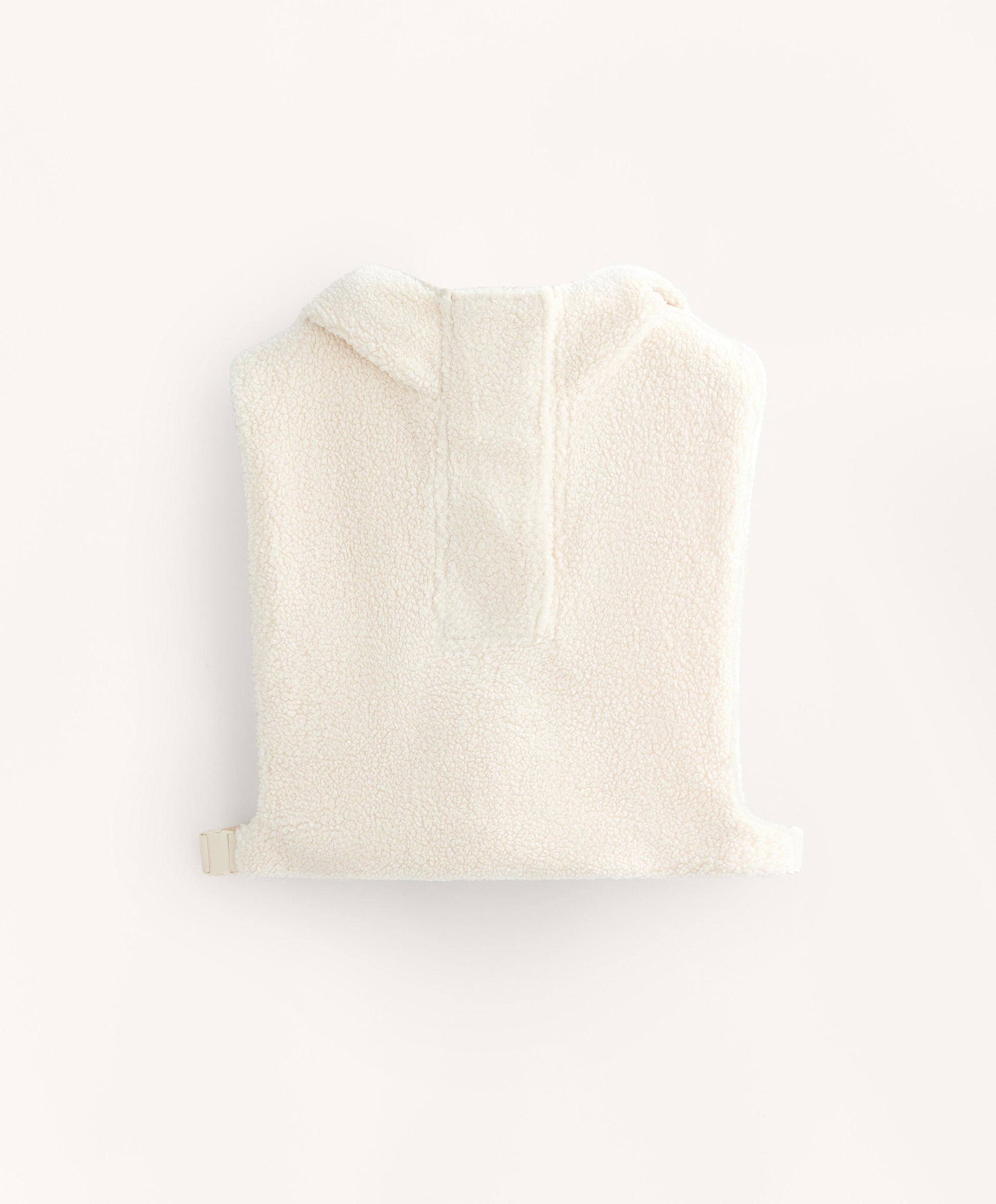 Ref. 3096/408/712 Gilet in borg fabric with adjustable hood. High neck with concealed button fastening.Materials and care instructions