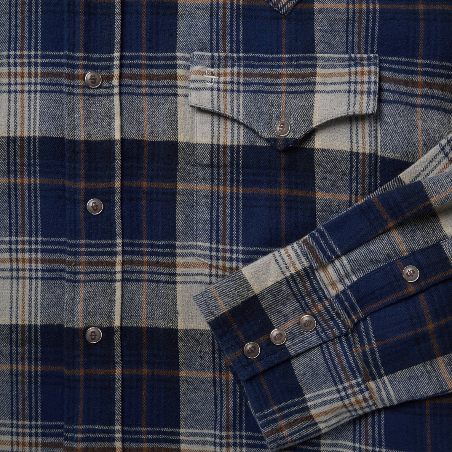 This flannel western shirt is crafted from high-quality brushed cotton twill that's been garment washed for a soft feel that will only improve over time. Its authentic details include a single-point curved back yoke, a spread collar with collar stays, subtle It embroidery on the chest and right cuff placket, a classic snap front and three-snap cuffs. Cut in our original fit for a traditional silhouette that allows for freedom of movement.