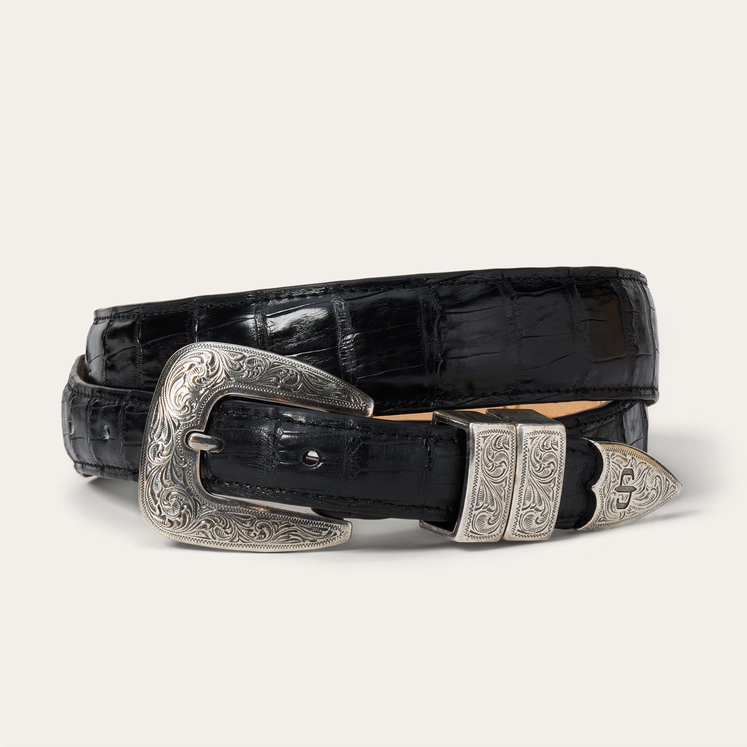 Made from genuine Caiman leather, this women's belt has a 1 ?"-1" tapered strap and is fully lined with leather. It features five holes on the point end to ensure a proper fit for all body types and is finished with a four-piece silver-tone It buckle set. Our exotic belts embody our legendary commitment to quality and make the perfect complement to your favorite hat and boots.