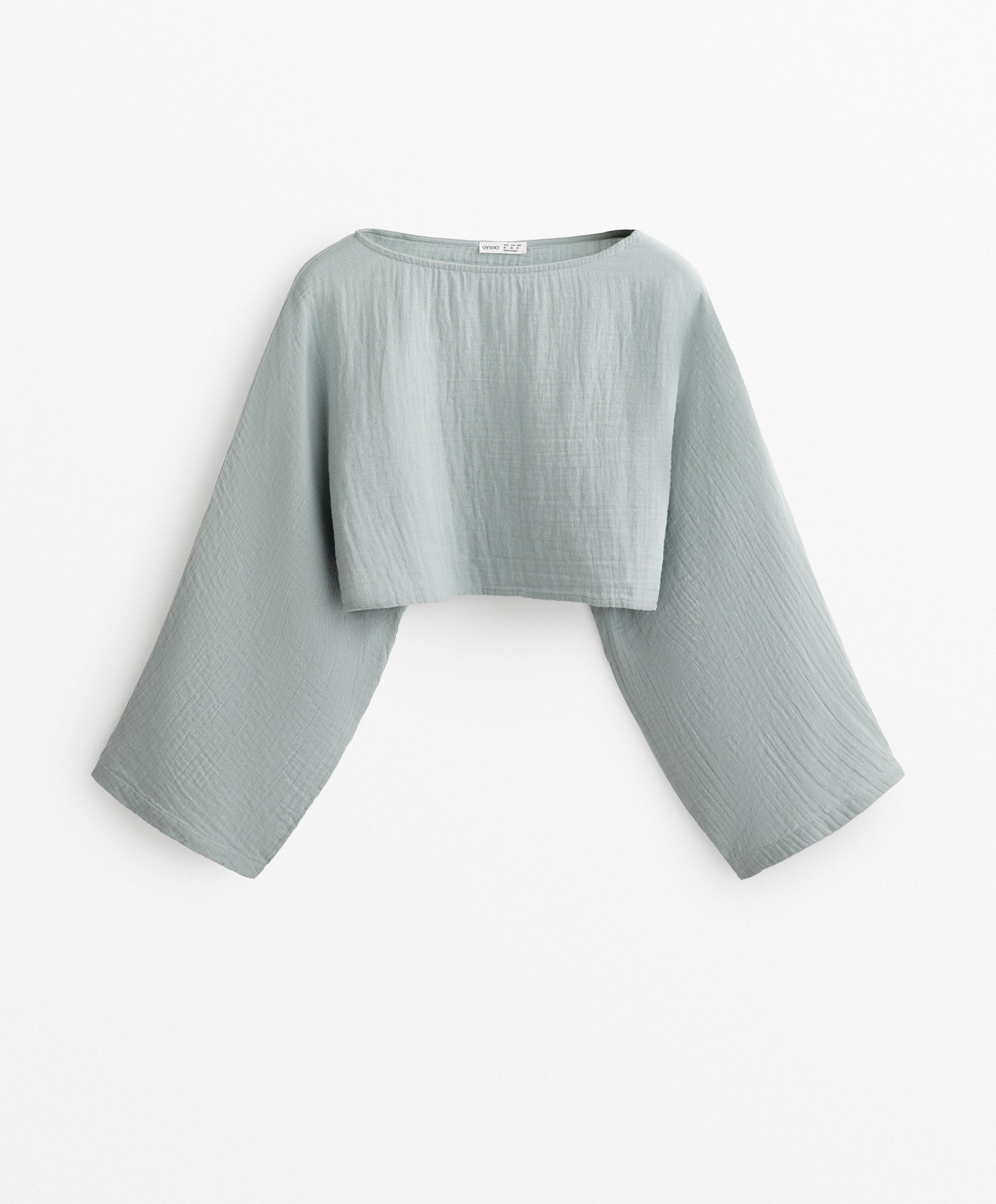 Ref. 3437/848/853 Crop top with wide, cape-style long sleeves and a boat neck. Fabric made from 100% cotton.Materials and care instructions