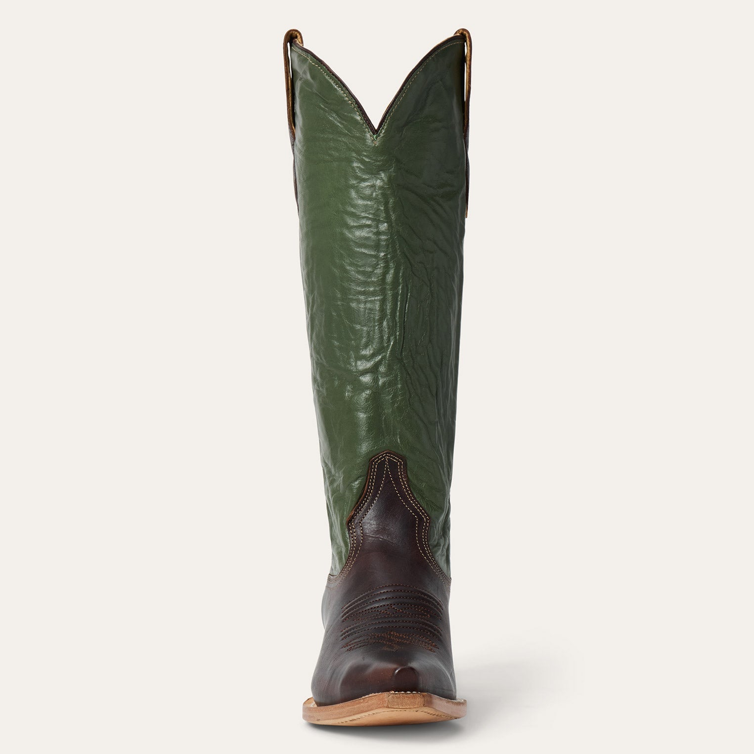 A statement-making western boot, the Clover Boot has a burnished leather vamp with a 15" goat leather shaft, a stylish snip toe and a durable YKK back zipper for easy entry. An all-leather sole, crafted with lemonwood pegs and brass nails, and a hand-stacked leather heel provide a firm foundation, while premium cowhide leather lining and a cushioned leather insole ensure all-day comfort and support.