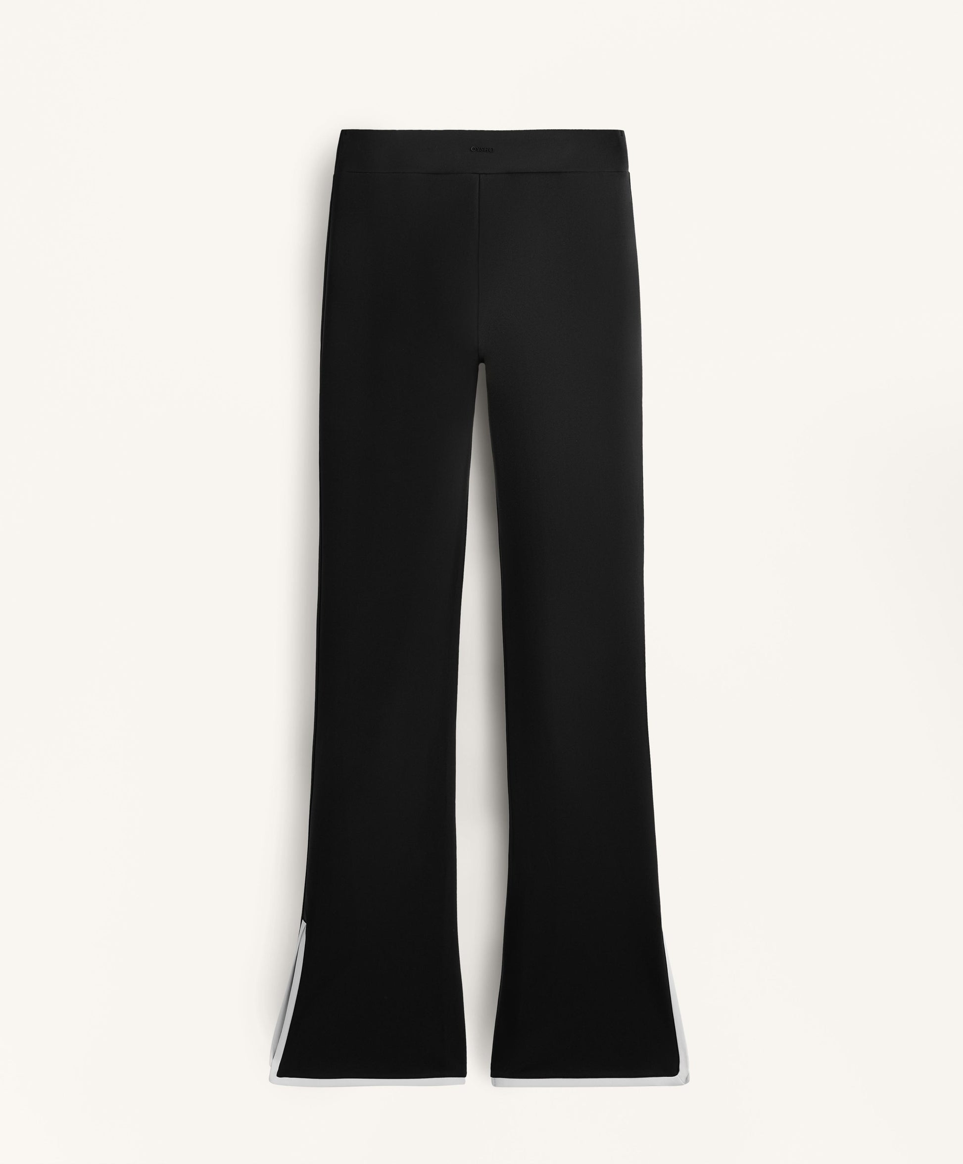 Ref. 3219/231/800 Flare trousers with a high-waisted fit. Featuring contrasting detail at the hem and a side slit.Materials and care instructions