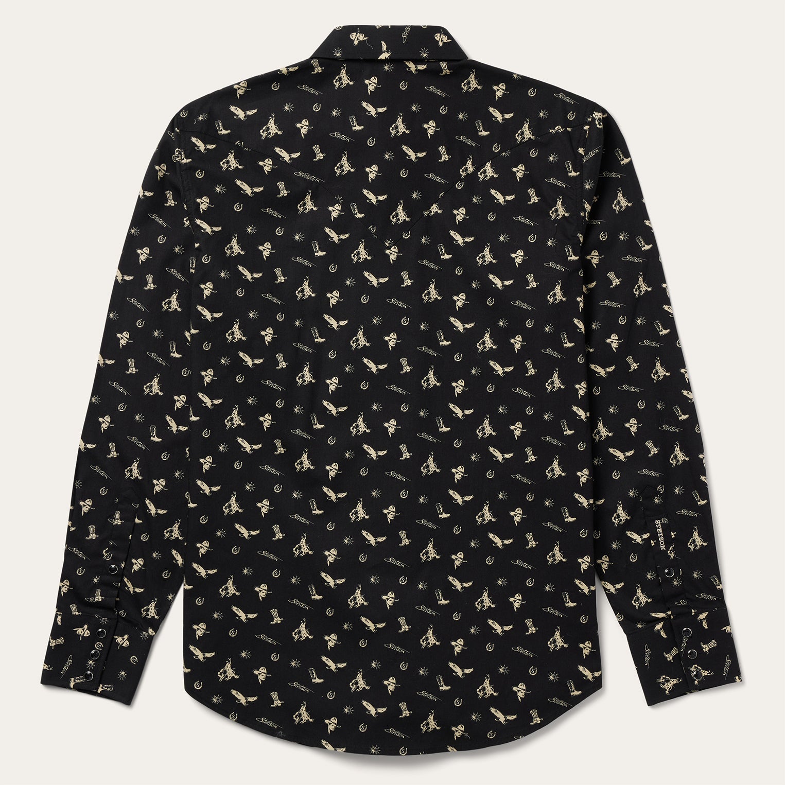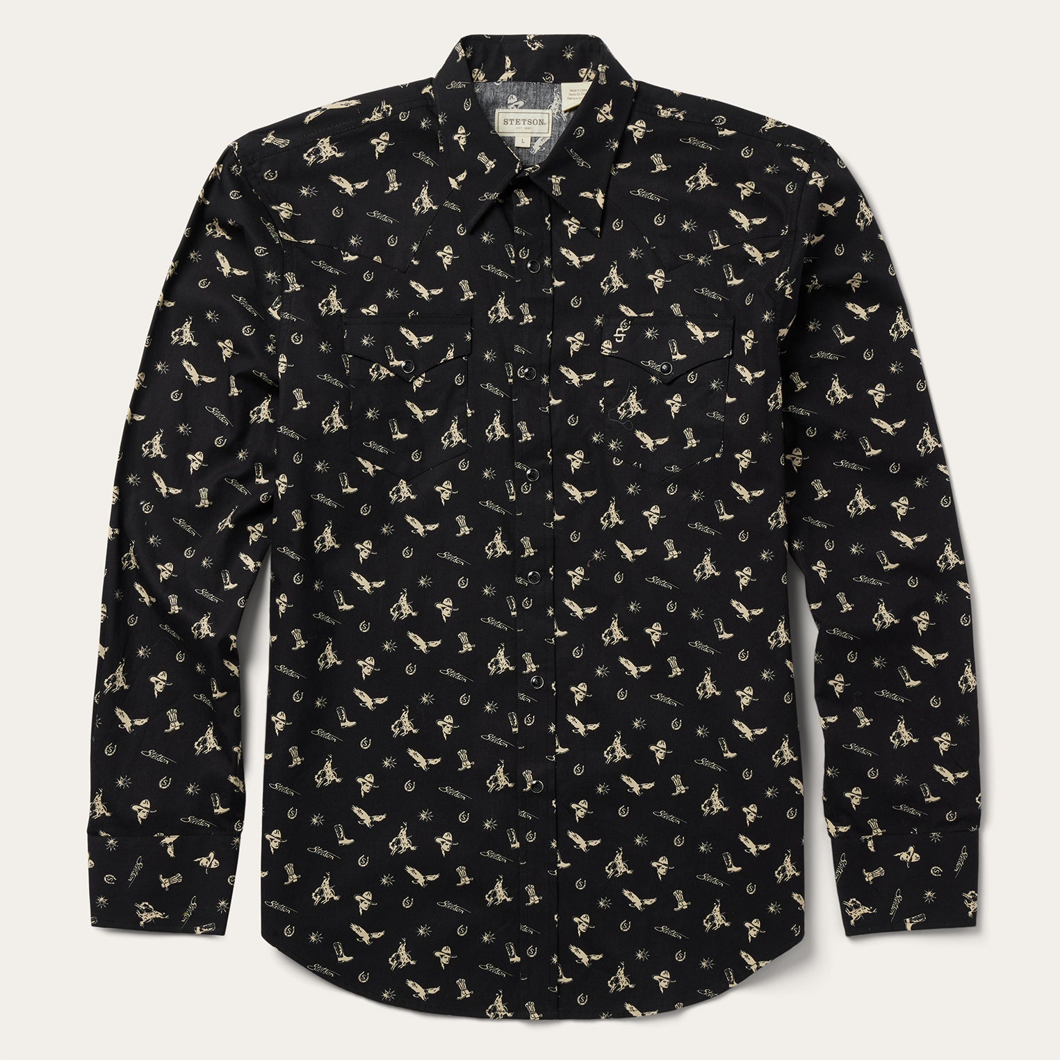 We set the standard for snap fronts. They're not just Western-inspired, they're imbued with a Western spirit. This modern fit shirt is crafted from crisp, breathable 100% cotton poplin that has been yarn-dyed for rich, lasting color and made to get better with age and wear. Featuring an exclusive "conversational" print of nostalgic cowboy motifs, it has a one-point, ultra-deep curved back yoke, subtle "S" and "It" embroidery at the chest and right sleeve placket, a three-snap cuff and a classic snap front featuring pearl logo snaps.