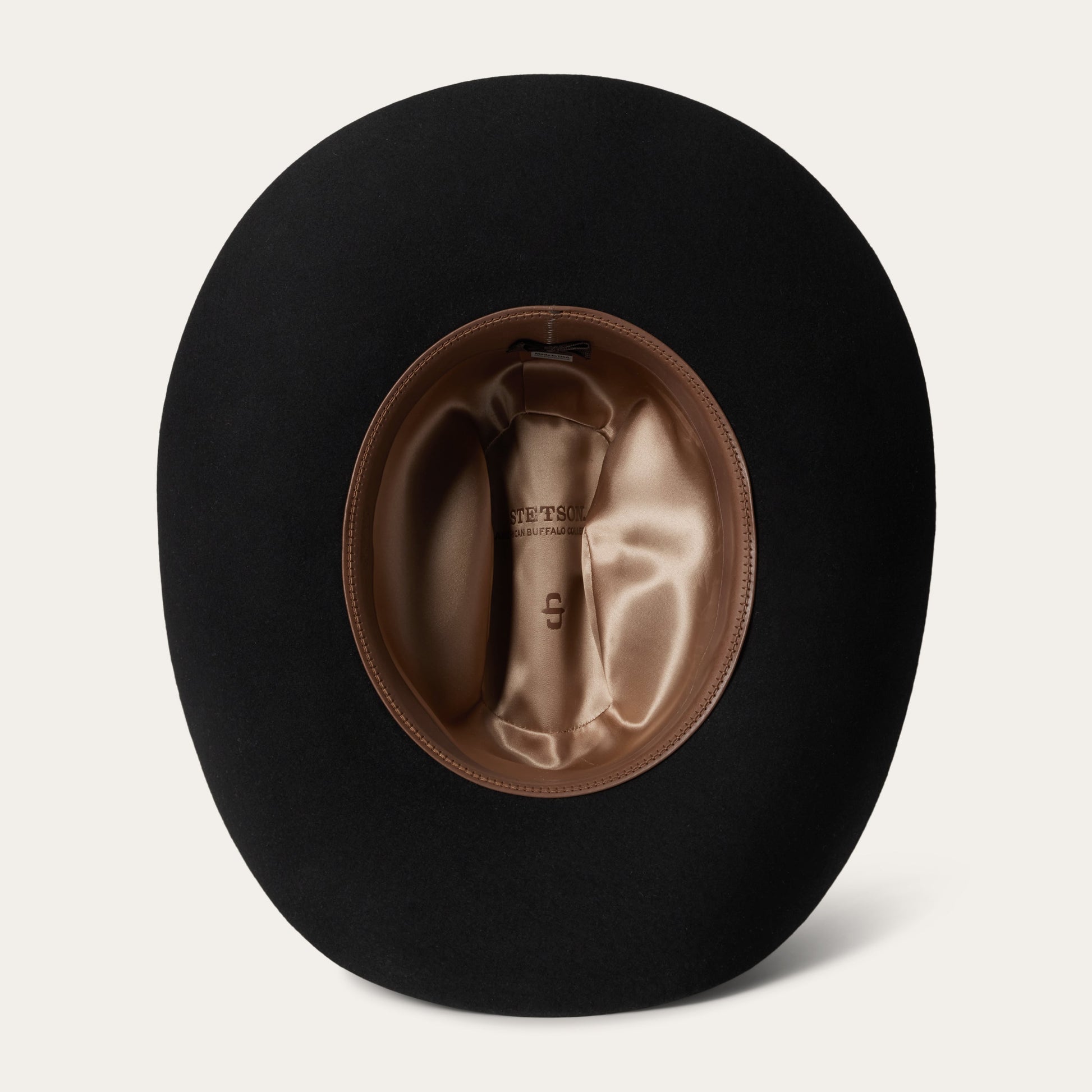 Part of our Buffalo collection, this cowboy hat is made in the USA of high-quality, weather-resistant 4X buffalo felt. Its classic Western profile features a classic cattleman crease, a 4" brim and a 4 5/8" regular oval crown. Additional details include a leather sweatband, satin lining, and a self-matching hat band with a three-piece silver-toned buckle set, as well as a It hat box.