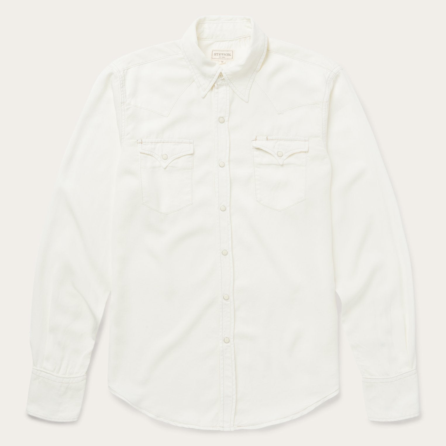 This premium Western shirt is constructed with contrast stitching and has a classic, loose cut for riding and outdoor activity. It's made from 100% Lyocell that hangs well while keeping its shape and only gets better with age. Two snap-closure pockets, a spread collar, and a one-point curved back yoke and single point front yokes give this denim shirt the perfect dose of character.Iconic Western details include It-branded snap buttons on the front placket, cuffs, and pockets, as well as custom embroidery on the chest and right cuff. Exceedingly durable and always comfortable, it's an all-occasion essential.