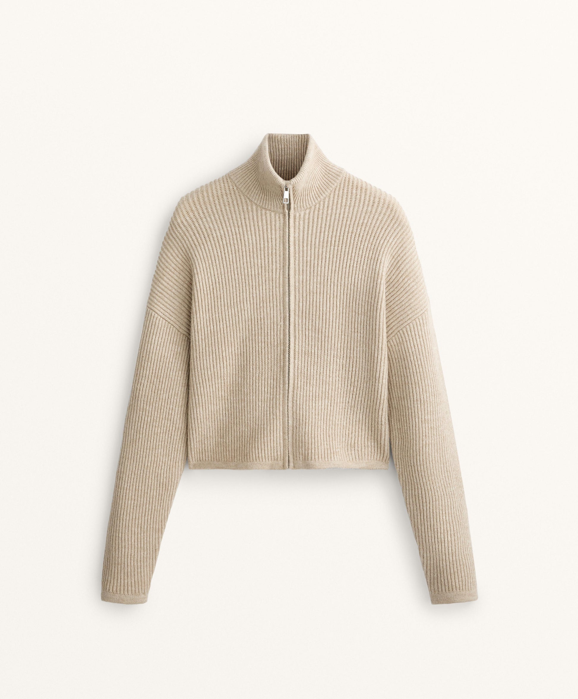 Crop high neck rib knit jacket