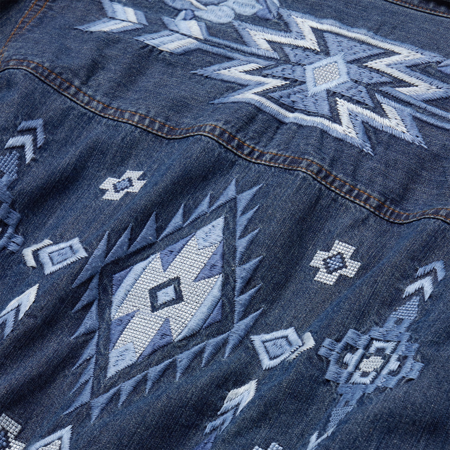 This dark blue denim shirt dress makes a statement with its eye-catching western-inspired embroidered detail. It has 3/4 Sleeves with two-snap cuffs, a straight back yoke and full front placket with snap closures. The bodice includes bust darts and the dress is gathered at the waist. Comfortably crafted from a soft lyocell denim, it will be a wardrobe mainstay for years to come.