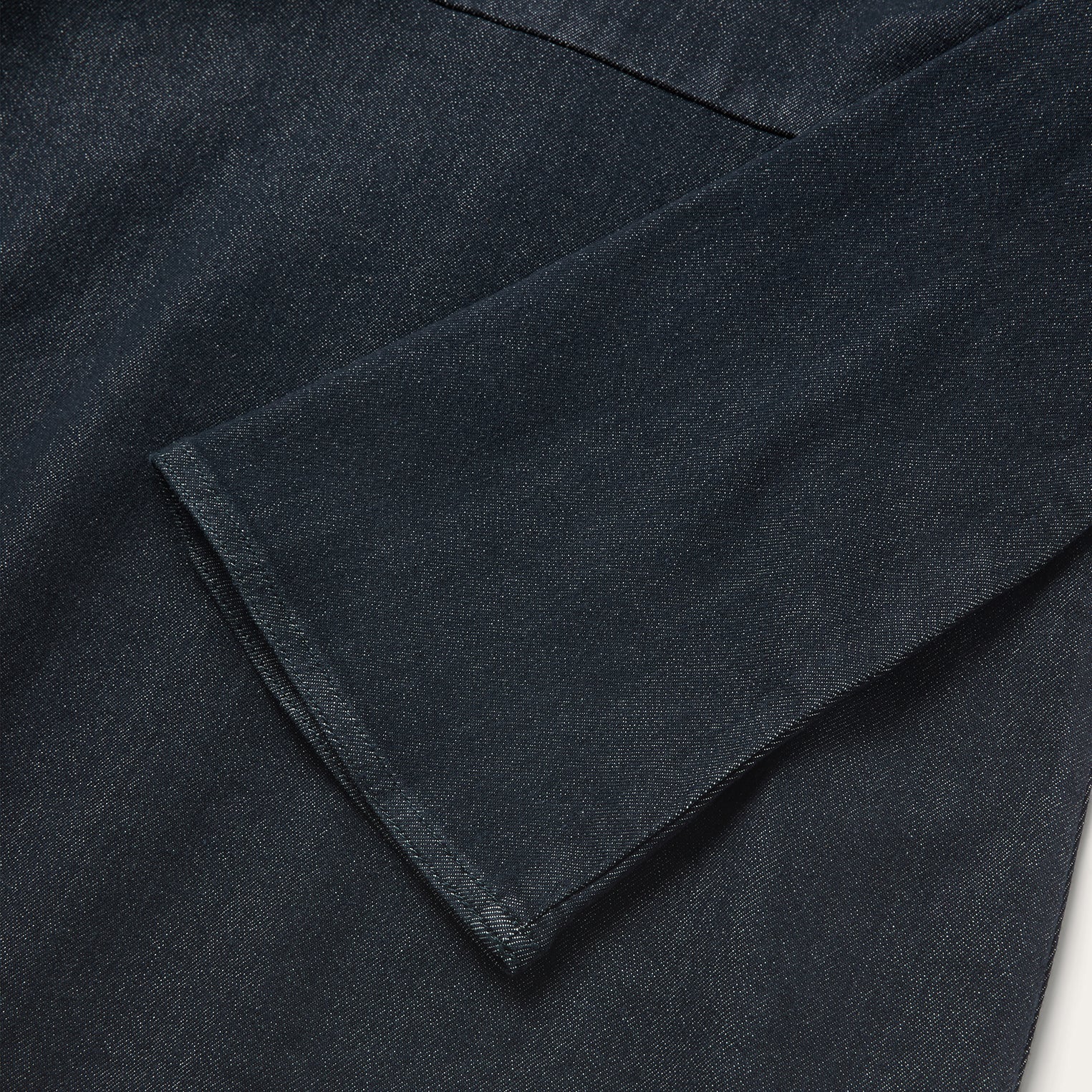 Crafted from dark rinse denim with a touch of stretch for comfort and ease of movement, this mid-length western-style dress features single-point front and back yokes, long wide sleeves, and tailored darts at the chest, waist, and back for structure and an invisible back zipper for a clean silhouette.