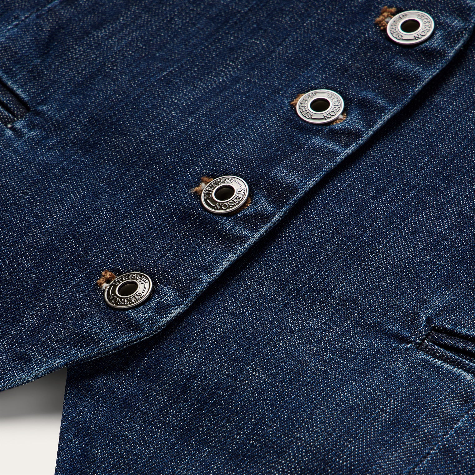 This western-inspired vest is crafted from high-quality cotton denim with just enough stretch to allow for all-day comfort and freedom of movement. With a timeless, versatile style, it's at home in the desert or in the city. It has a button front, welt pockets, angled front yokes and a waist belt at center back. Front darts and back princess seams provide a flattering, fitted appearance.