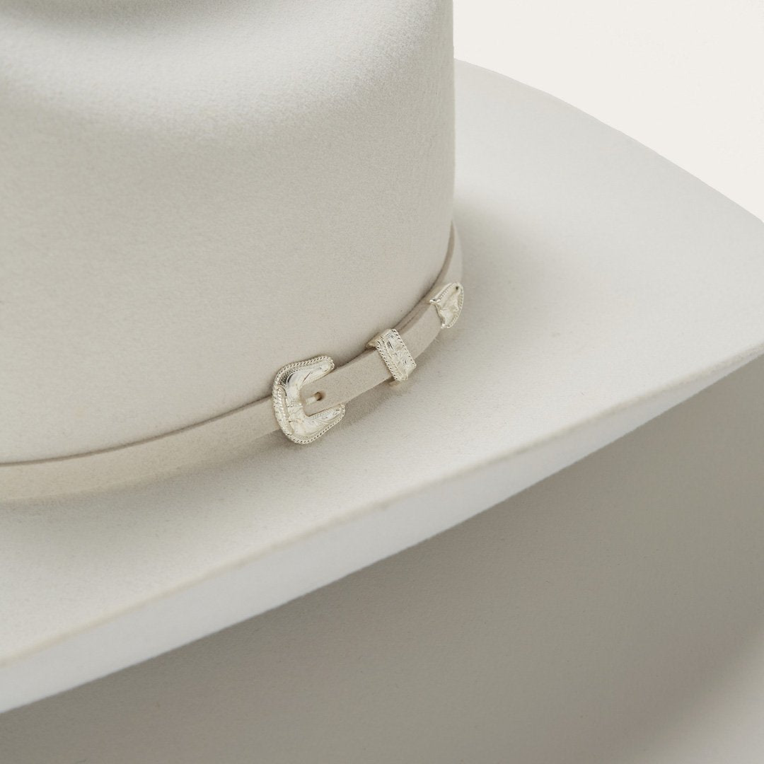 The Deadwood 4X exemplifies the timelessness of classic western style and It's legendary craftsmanship. Handmade in the U.S.A. from 4X quality wool felt, it stands out against any scenery with its iconic silhouette. As with all hats that come out of our Texas factory, each Deadwood is touched by more than 100 pairs of hands during production, resulting in a hat that is designed and built to stand the test of time. It has a 4 ?" medium cattleman crown and a 4" medium curved brim and features a matching self-felt hatband and a traditional three-piece silver-tone buckle set. A handsewn genuine leather sweatband and full satin liner provide a time-tested fit and premium comfort.