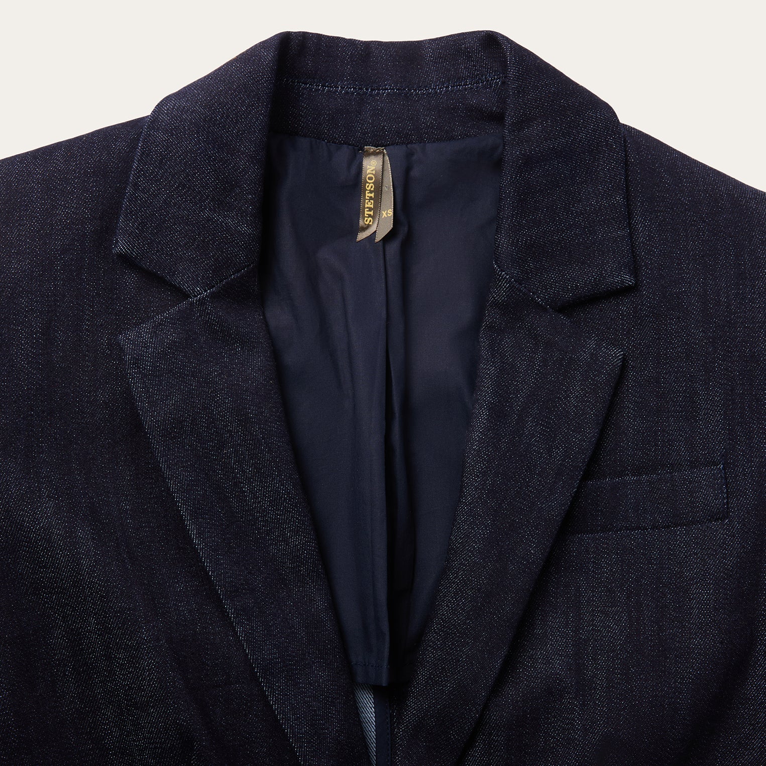 Timeless and versatile, this stretch denim blazer offers a refined take on western-inspired style. It features a classic notch collar, a single front button closure, plus welt and flap pockets. Tailored details including front darts, princess seams, and a center back vent add structure while a hint of stretch ensures a comfortable fit that allows for freedom of movement.