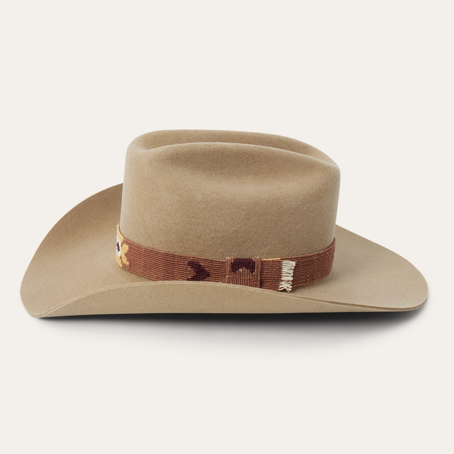 This western-inspired fashion hat makes a statement with its bold silhouette and unique, bohemian style details. It features a 4 5/8" tall cattleman crown, 3 3/4" brim and woven hatband. Handmade in the U.S.A. from high-quality wool felt, it's finished with a moisture-wicking DRI-LEX? sweatband and satin liner for a comfortable, all-day fit.