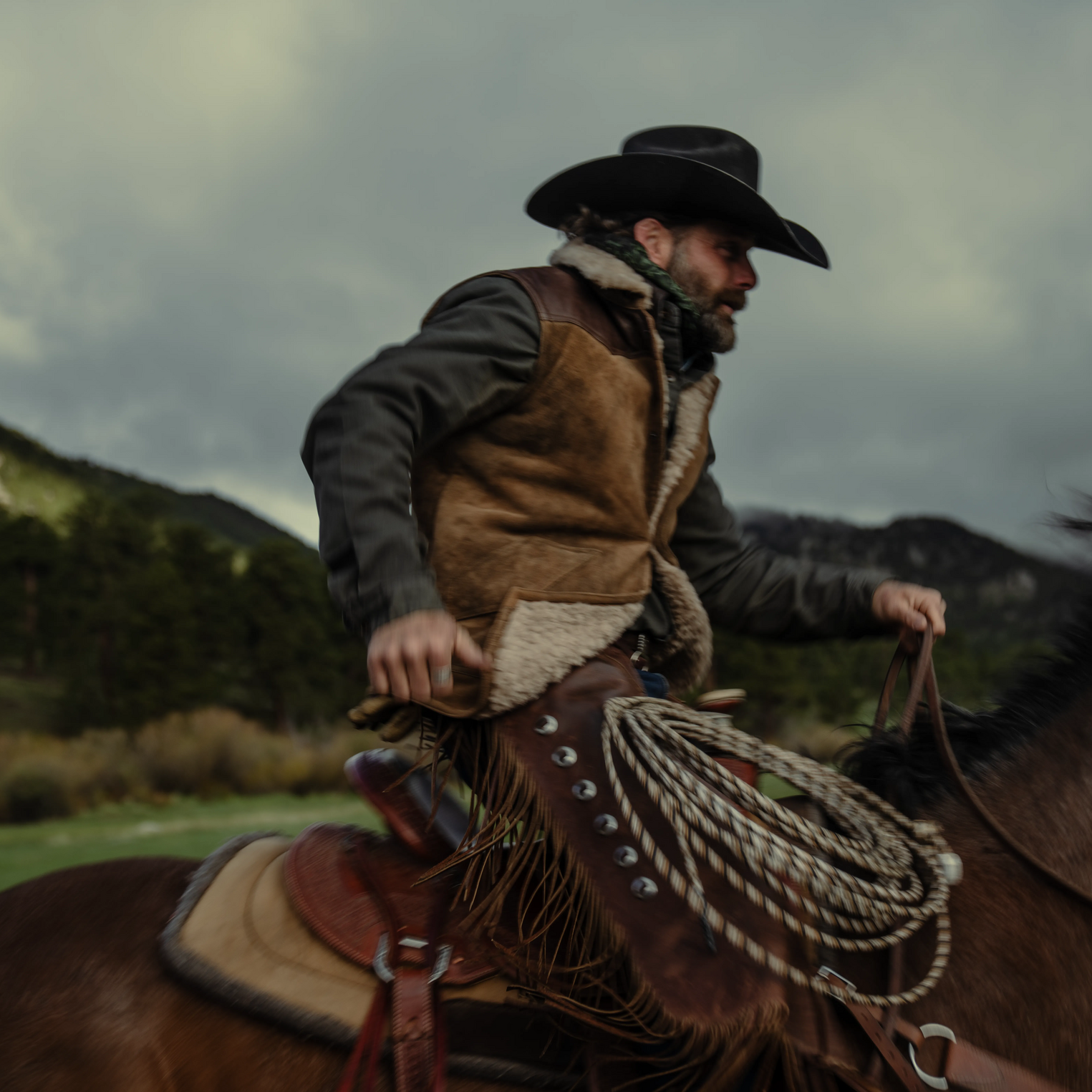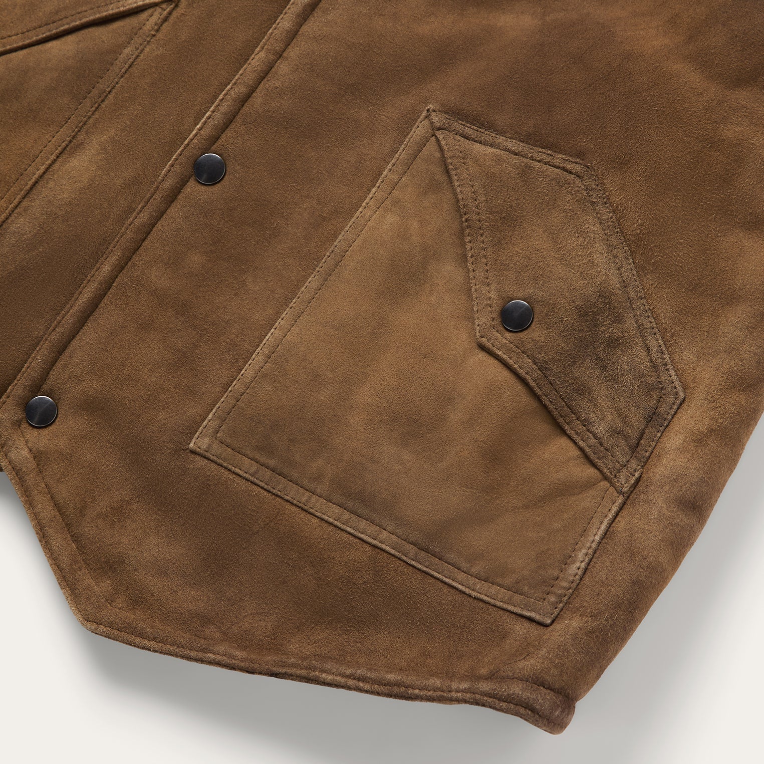 Crafted from high-quality suede leather with a vintage-inspired finish, the Distressed Suede Vest combines rugged western character with cold-weather comfort. It features contrast chocolate brown yokes, an oversized sherpa-lined collar, and a fully sherpa-lined interior for added warmth. With a full snap front and angled patch pockets with snap closures, it¡¯s a functional outer layer with timeless western style.