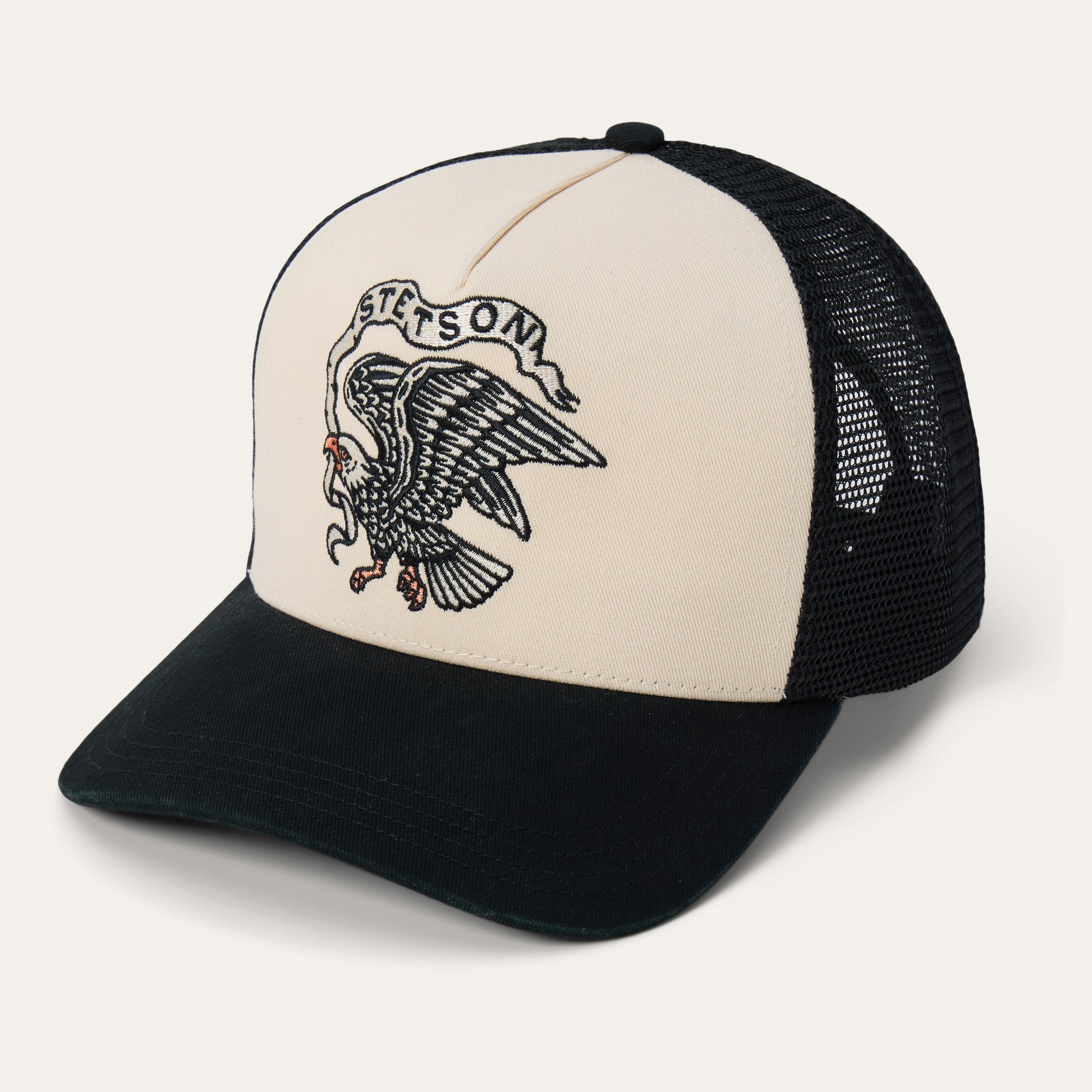 This trucker hat celebrates the spirit of the American West and features a soaring eagle embroidered logo. Crafted from high-quality 100% cotton It has a traditional mesh back for breathability, a gently curved bill and a classic snapback closure to ensure a secure, adjustable fit.