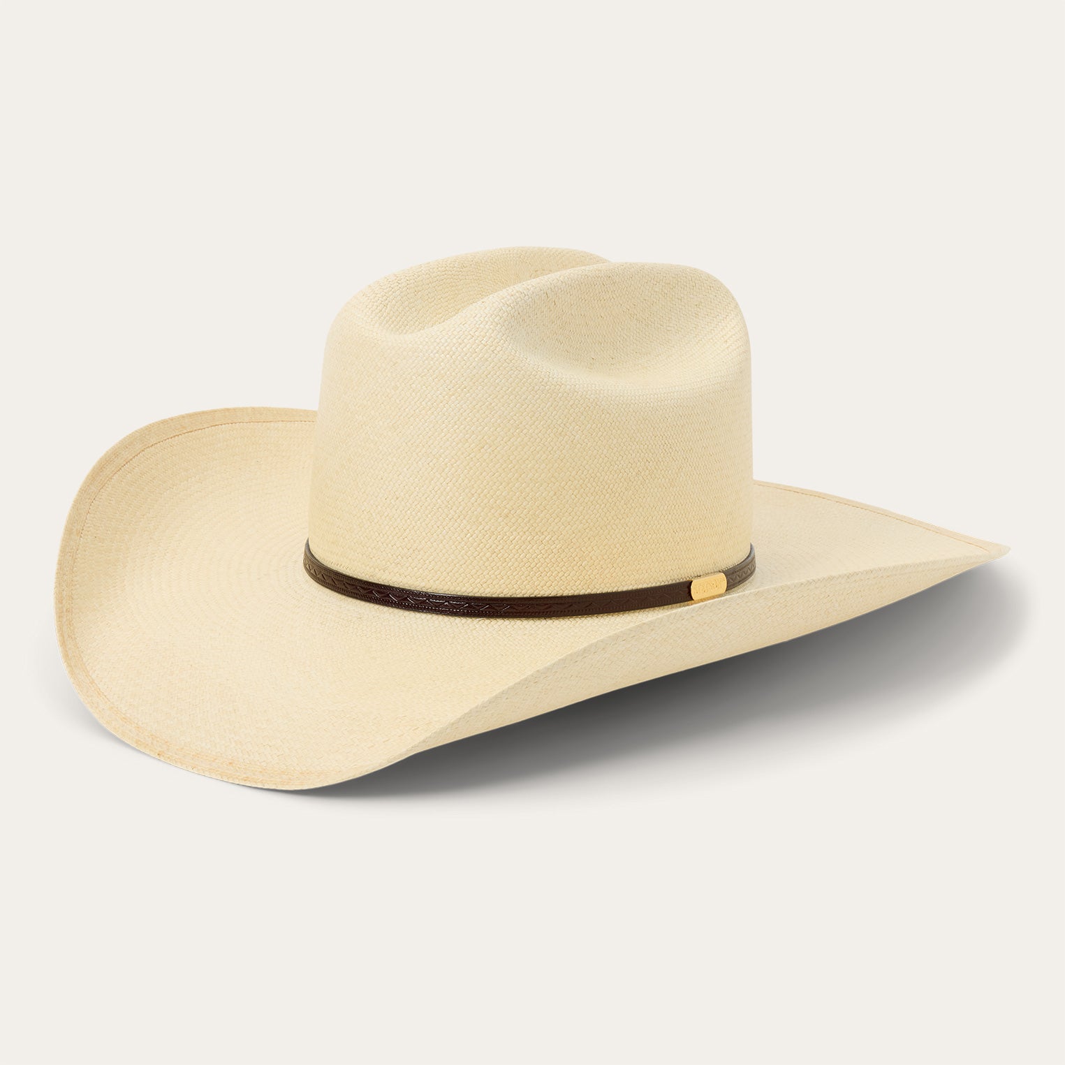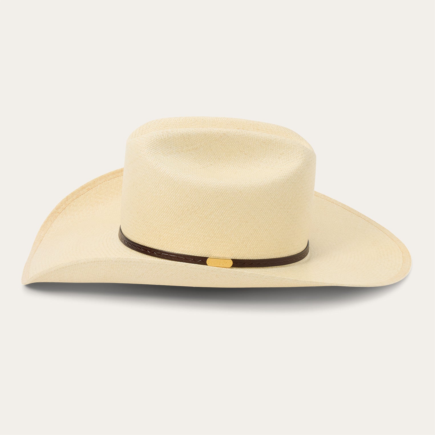 This ultra-premium straw western hat combines a classic western profile with premier grade 20 Panama straw in one timeless package. Grades of Panama straw are determined by the tightness of the weave, with 20 registering as "extra fine," resulting in a lightweight hat of unbeatable resilience with a smooth, almost fabric-like feel.