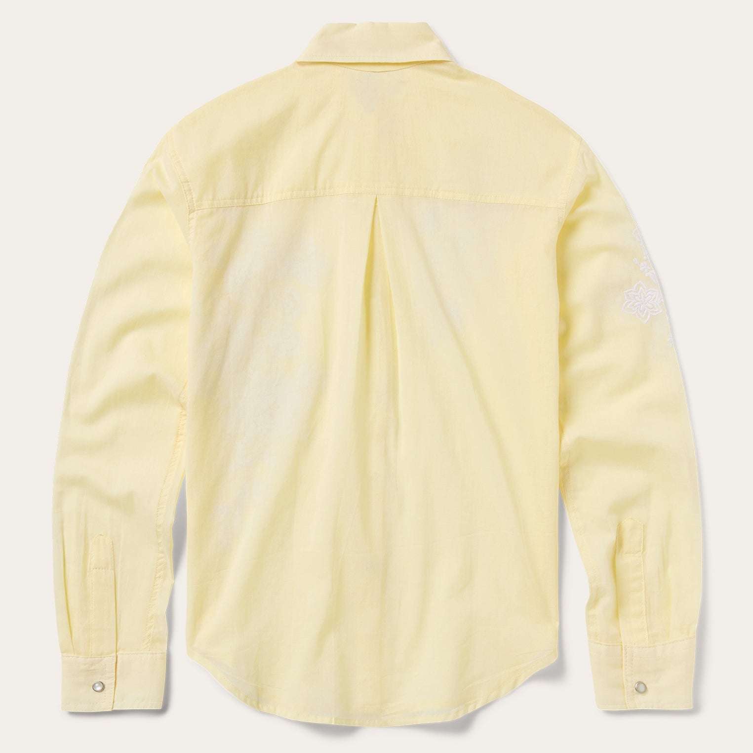 This stylish chocolate brown long-sleeve western shirt is crafted from soft rayon twill and features stunning floral embroidery on its single point back yoke and curvy front yokes. Yarn-dyed for rich, lasting color, it has a full snap front and contrast champagne-colored piping. The silk-like fabric has an easy drape and it's cut in our flattering Boyfriend Fit which allows for comfort and freedom of movement.