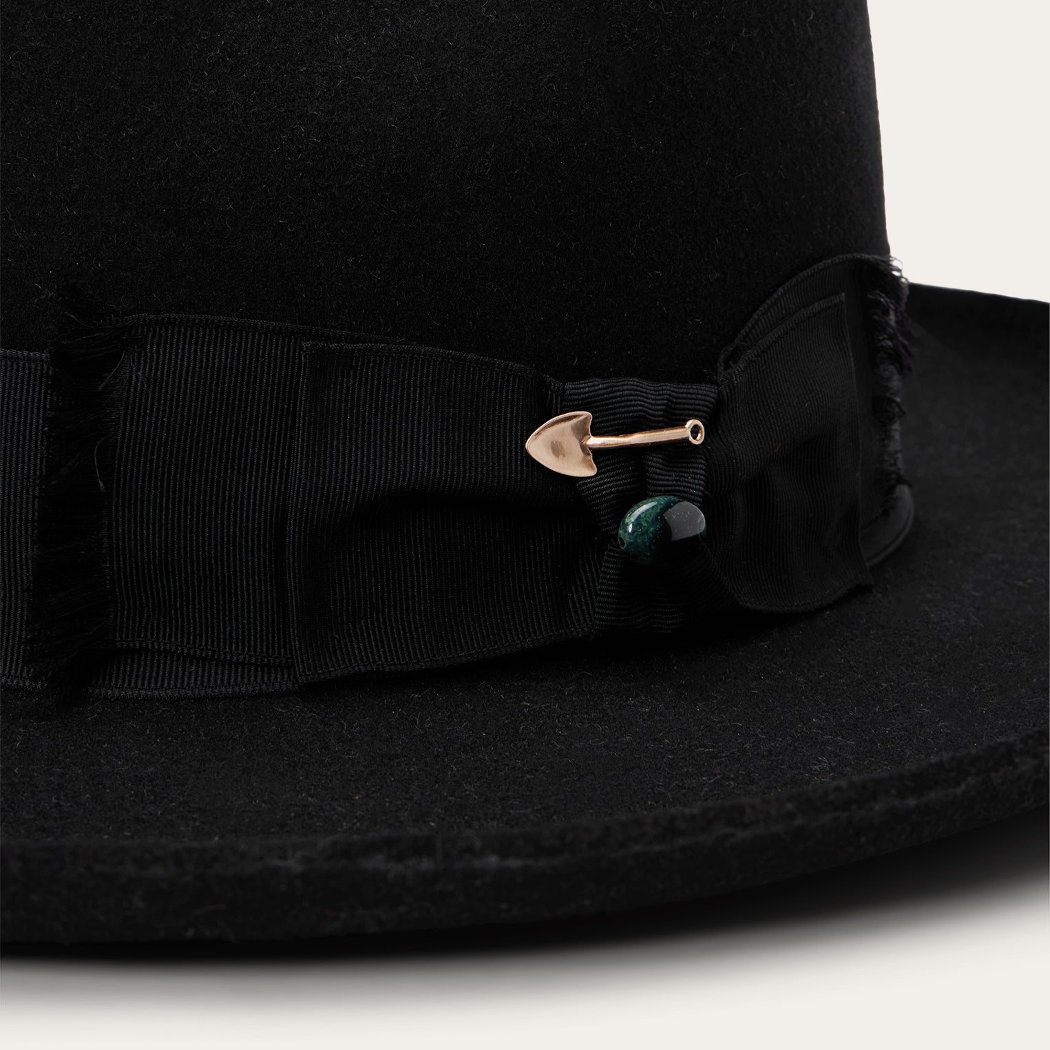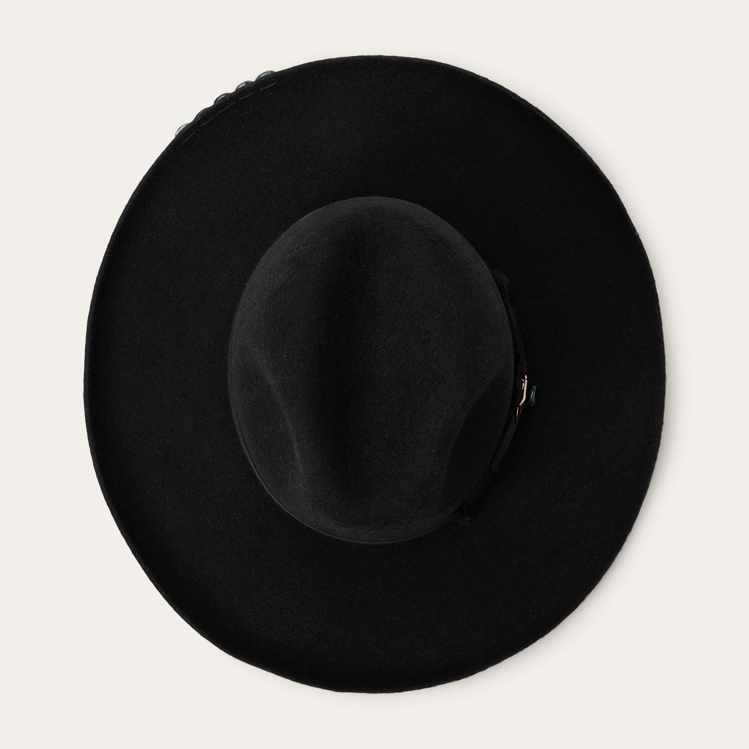 Made with pride in Texas, the Eureka is a statement-making style with a touch of Southwestern flair. Crafted of quality felt with a firm finish, it has a pinch front crown, pencil-curled brim augmented with turquoise stones and a wide grosgrain hatband with a turquoise stone accent and shovel pin. Back in 1865, while stuck in a rainstorm in the Colorado Rockies, John B. It had his fateful eureka moment, creating the first-ever It hat, which was purpose-built to ward off whatever the elements could throw its way. More than a century-and-a-half later, The Eureka carries on that same pioneering spirit.