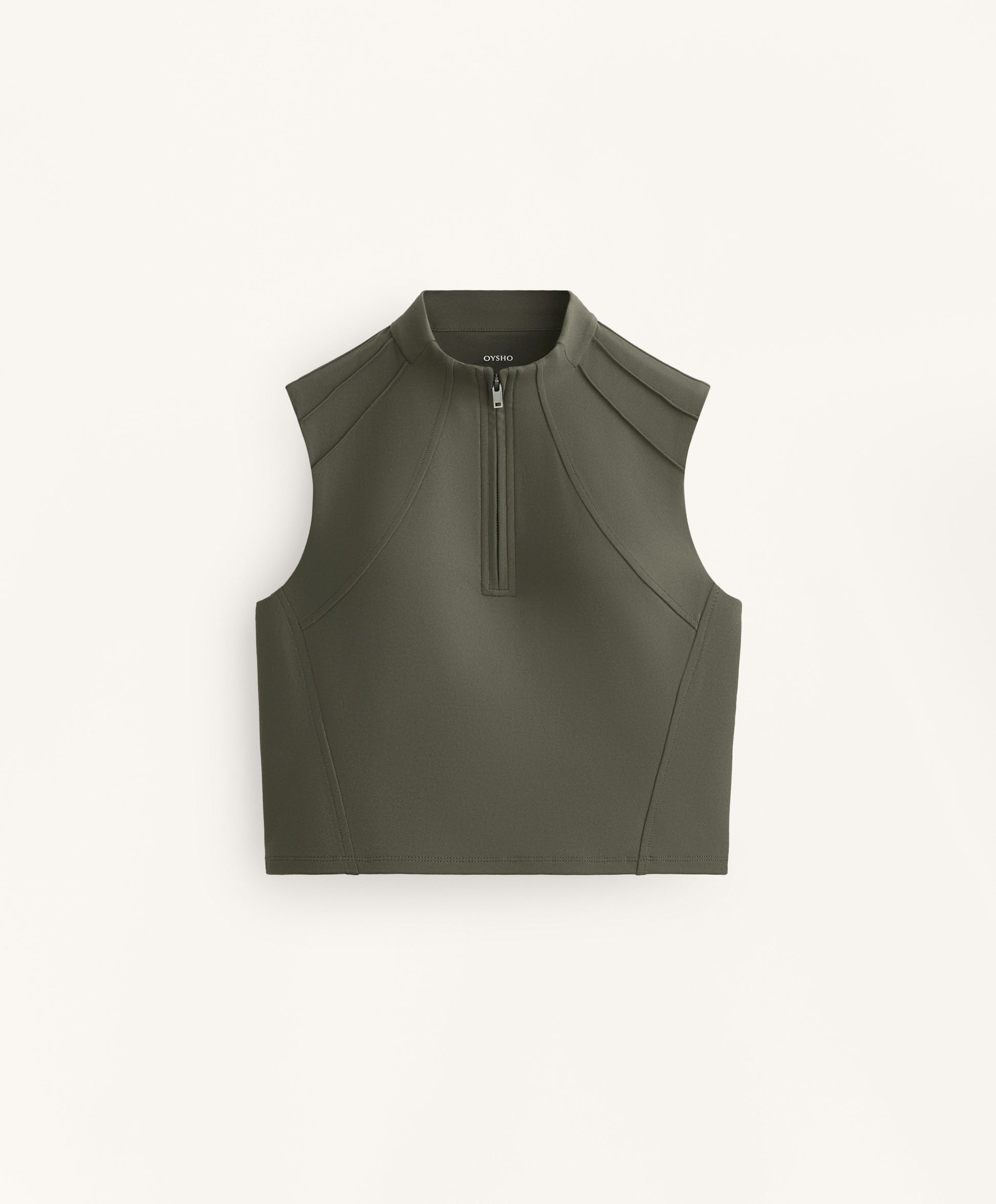 Ref. 3722/288/595 Sleeveless tank top with built-in bra with removable lightly padded cups. Rib detail at the shoulders and half front zip to chest height. Breathable, high-strength fabric.Materials and care instructions