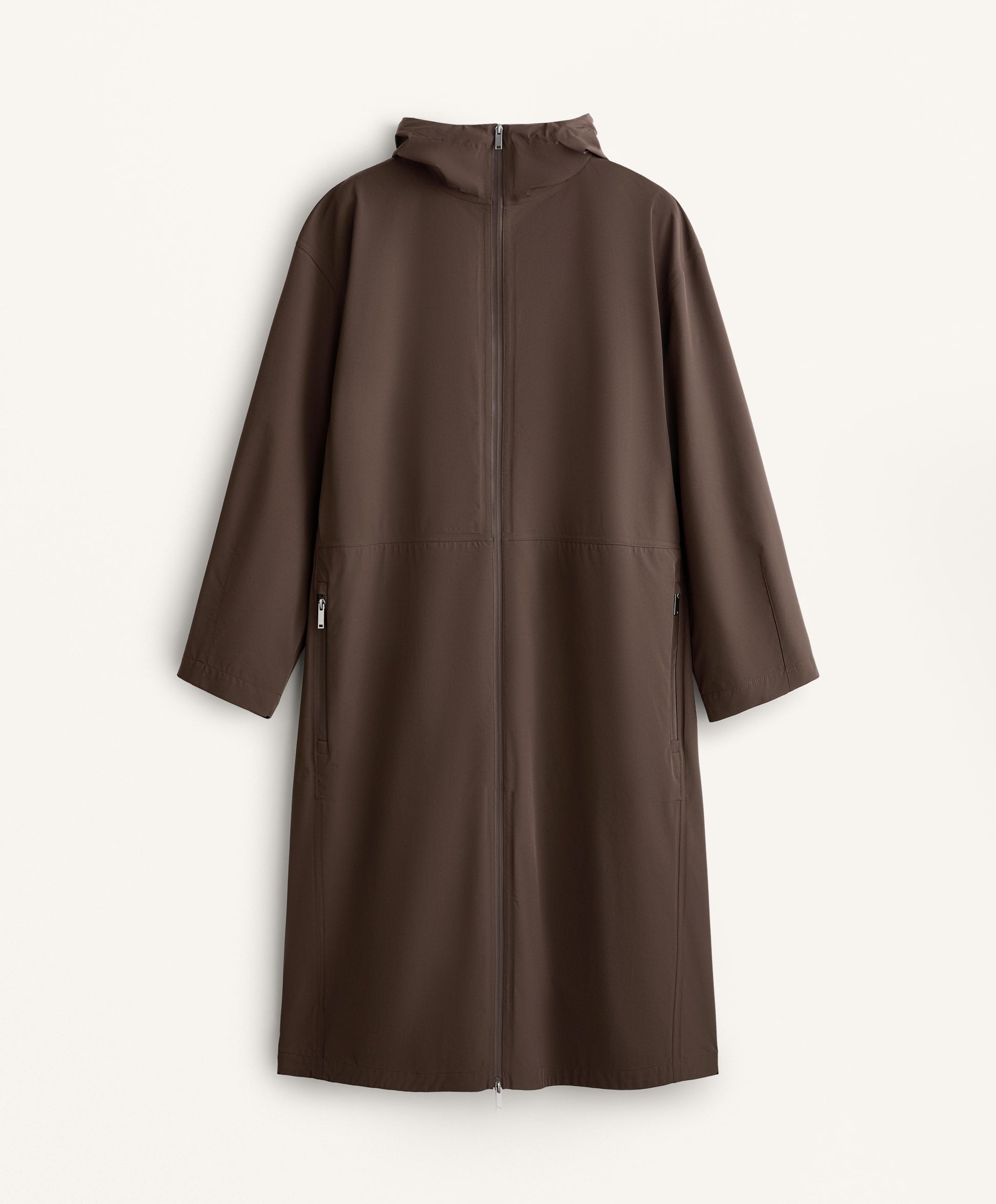 Ref. 3036/945/760 Extra lightweight long waterproof jacket with a high neck and a hood that can be adjusted with drawstrings. Front two-way zip fastening. Central pleat detail on the back. Breathable, windproof fabric and magnetic fastening buttons on the cuff.The fabric can withstand ¡Ý10k of water penetration (10,000 mm of pressurised water penetration). The garment is made with sealed (critical or complete) seams and airtight zips that offer enhanced waterproofing.