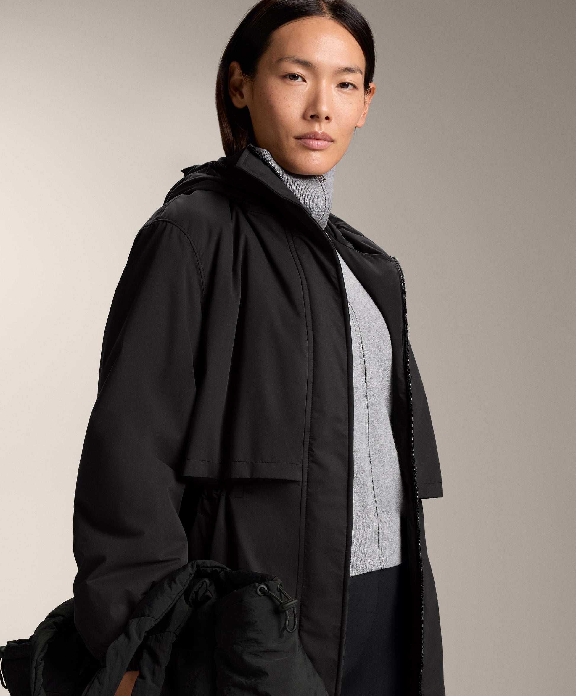 Ref. 3038/945/507 Long waterproof, windproof and padded jacket with FELLEX filling with AEROGEL. FELLEX AEROGEL technology is made of polyester and contains the AEROGEL component, which increases thermal insulation without adding extra weight to the garment. This material is used in astronauts' jumpsuits due to its lightness and heat capacity.Front fastening with zip and buttons with magnetic closure. Adjustable inner drawstring at the waist. High neck and adjustable hood. Side and inside pockets with brushed inner layer. Cuffs on the sleeves.