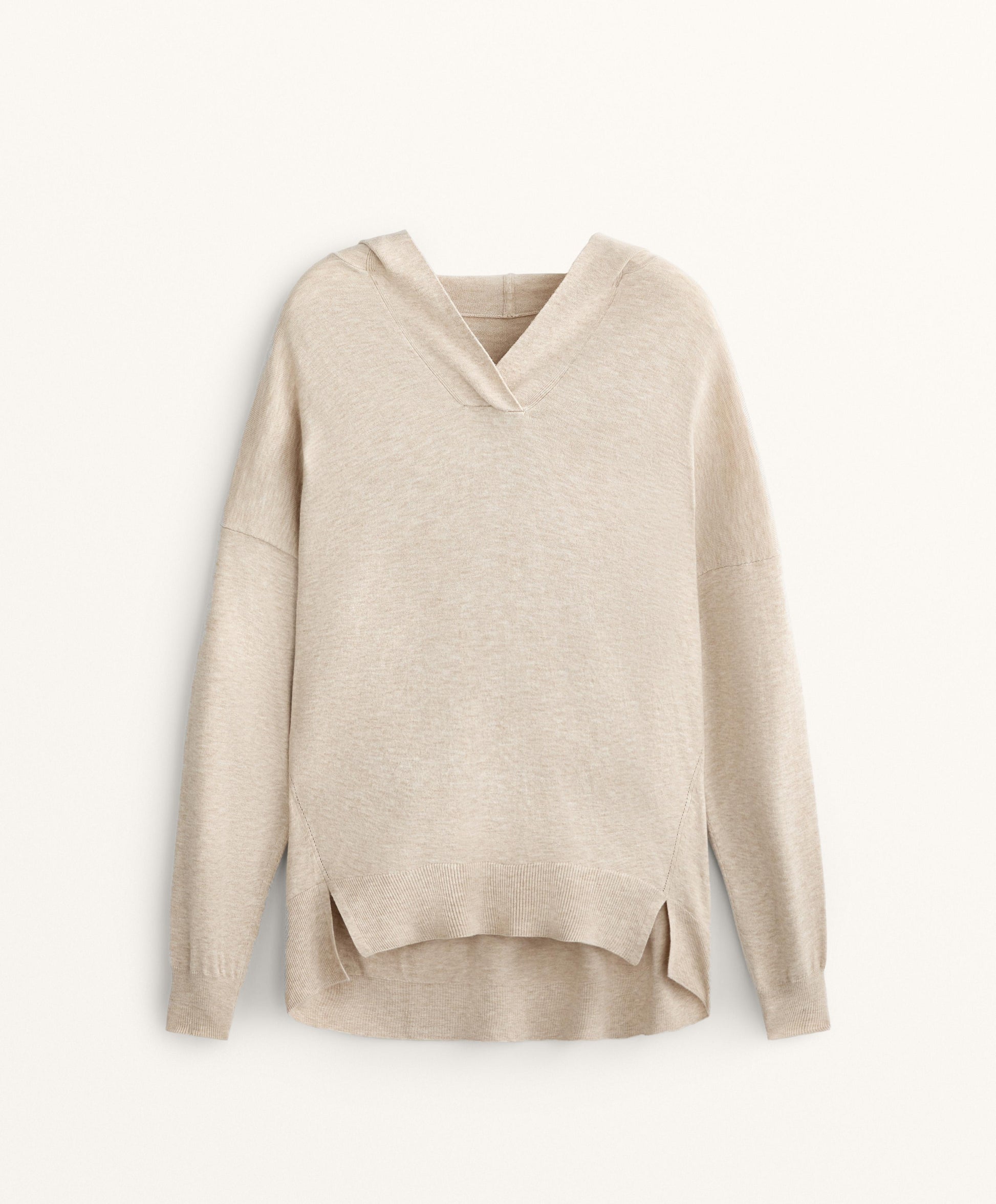 Ref. 3789/770/806 Loose-fit jumper with a hood and long sleeves. Featuring rib detail on the hem and cuffs. Fine knit fabric.Materials and care instructions