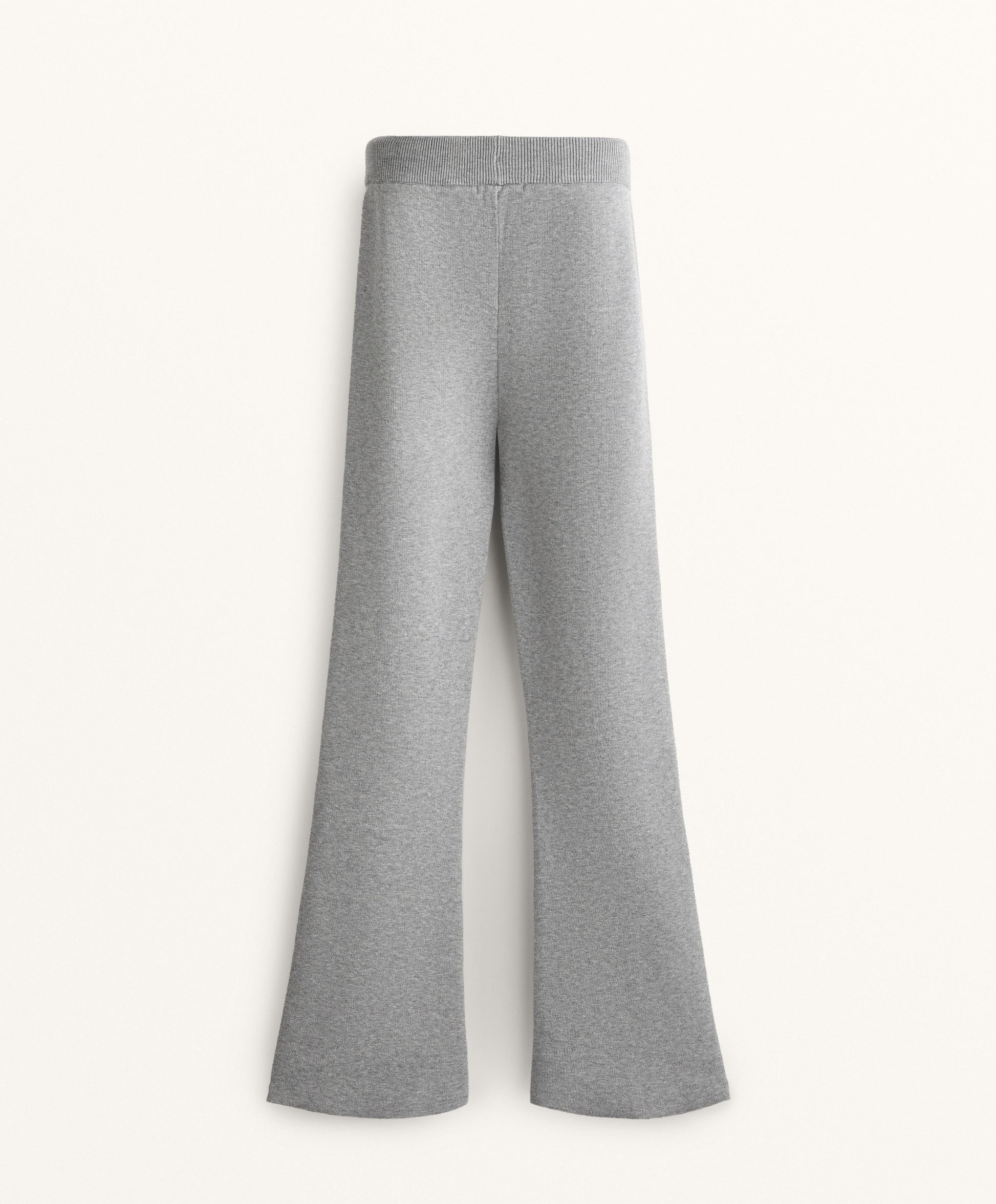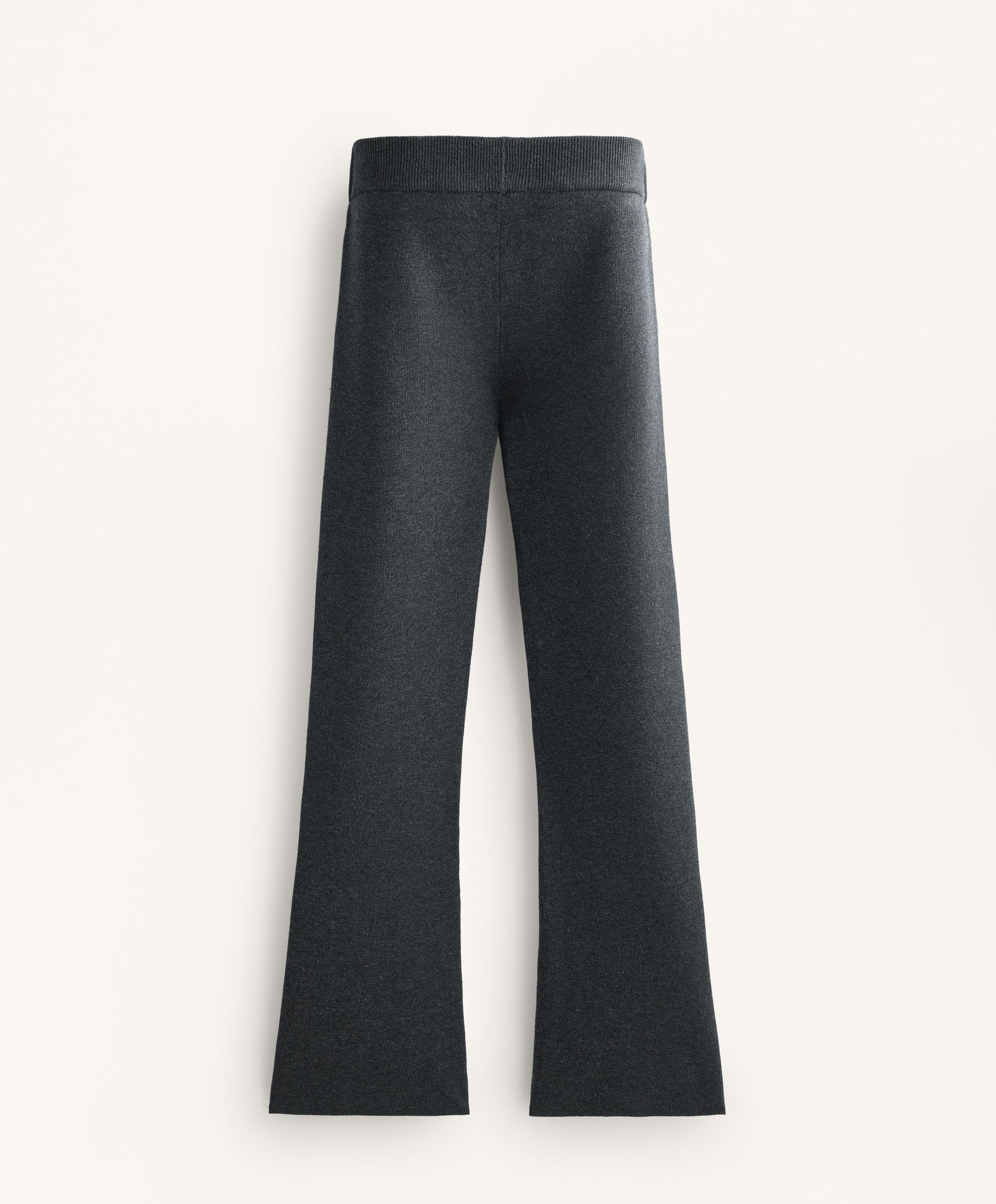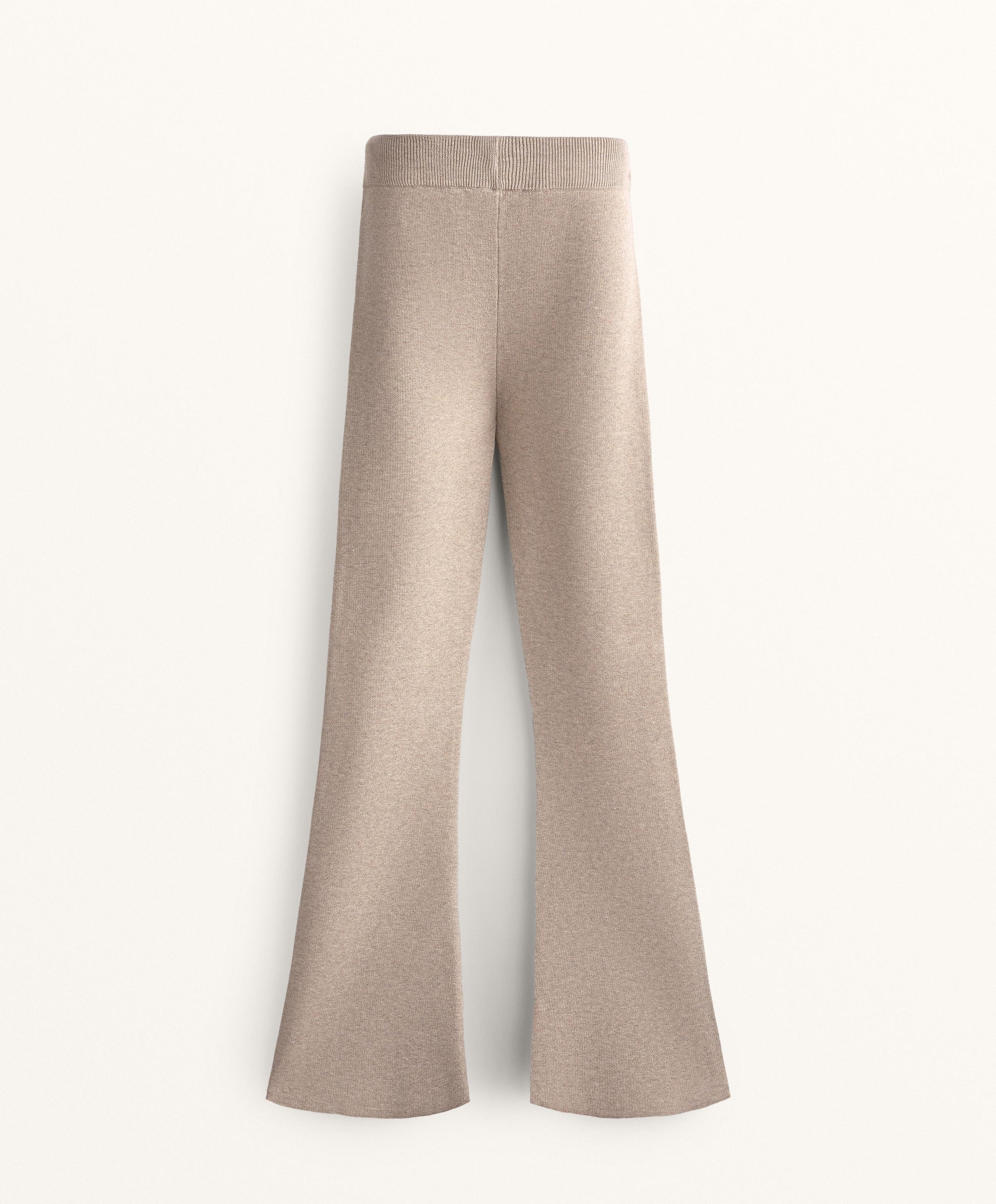 Ref. 3383/880/758 Flare knit trousers with adjustable stretch waistband. Rib detailing at the waist.Materials and care instructions