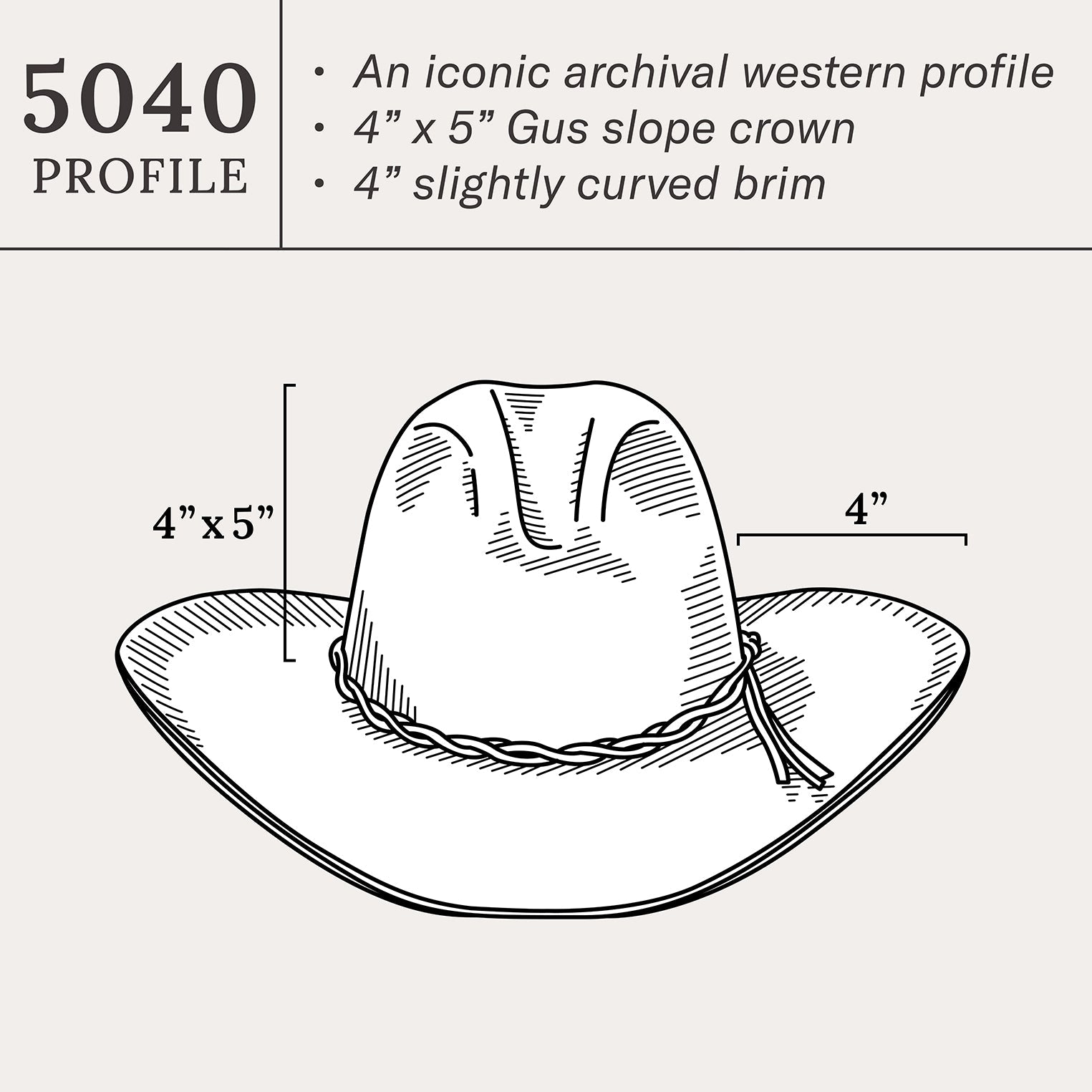 A true It icon, the Gus combines legendary quality and a classic profile that recalls the earliest days of western hats. The Gus is crafted from our proprietary 6X fur felt, which is prized for its durability and elegant feel, and, as with all hats that come out of our factory in Texas, each Gus is touched by more than 100 sets of hands during production, resulting in a hat that is designed and built to stand the test of time. It features a 4" x 5" medium slope crown and 4" slightly curved brim. Each Gus is finished with a twisted leather band and a branding-iron hat pin bearing the initials "JBS", a nod to our founder, John B. It, whose pioneering legacy lives on in every hat we make. A handsewn genuine leather sweatband and full satin liner provide a time-tested fit and premium comfort.
