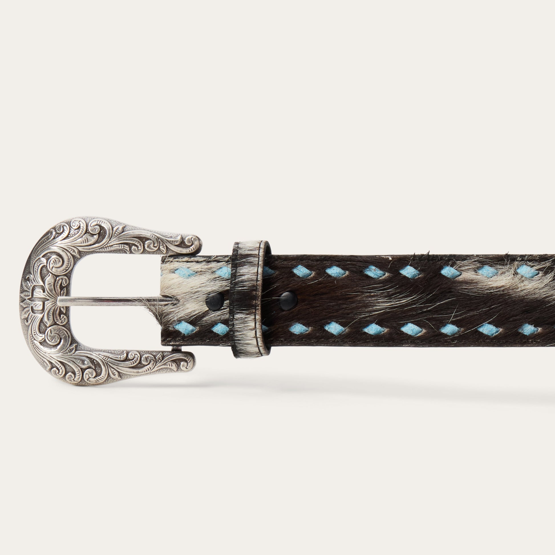 Made from top grain leather, this belt has a 1 ?" hair-on-hide strap with laced edge detail. It features five holes on the point end to ensure a proper fit for all body types and is finished with an engraved silver-tone It buckle. Our belts embody our legendary commitment to quality and make the perfect complement to your favorite hat and boots.