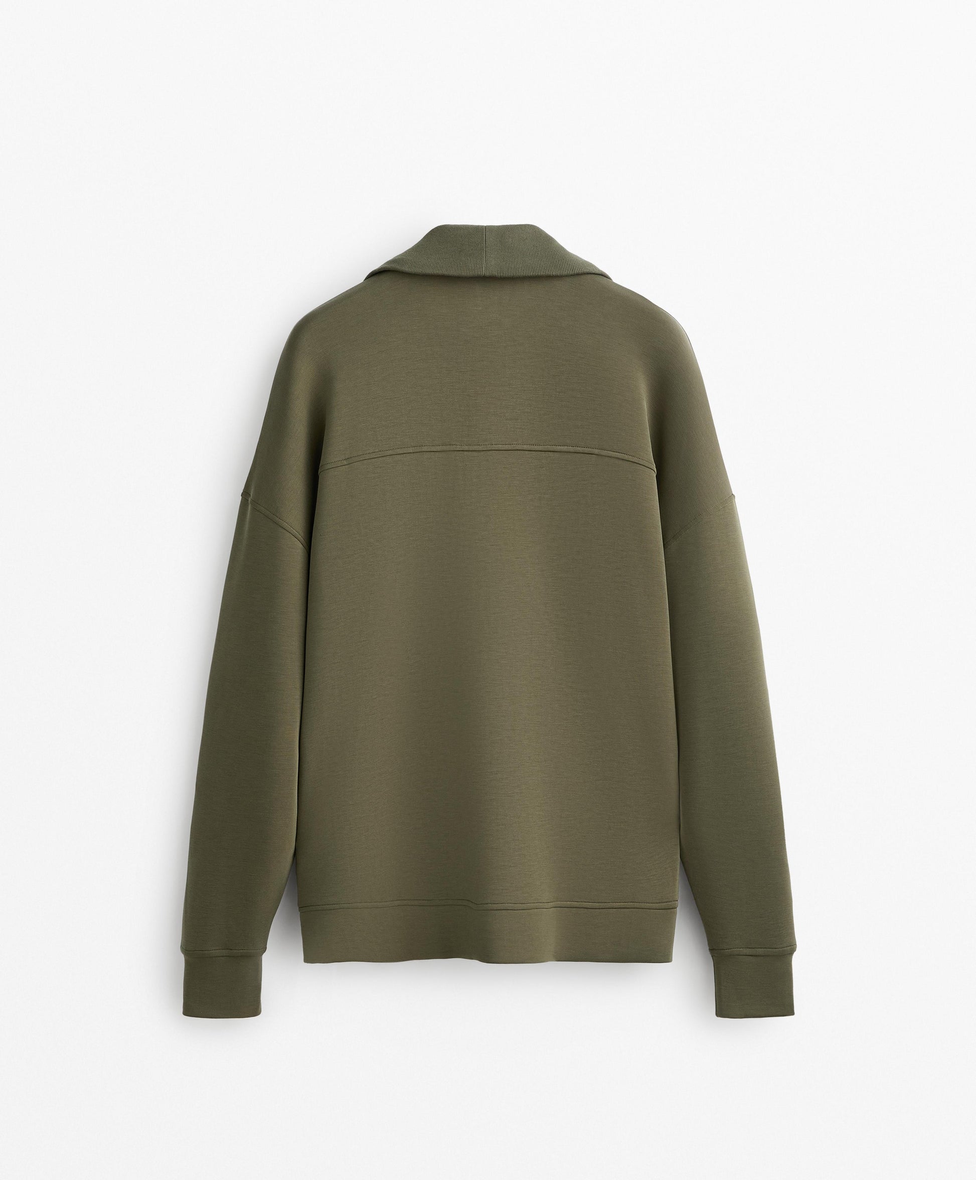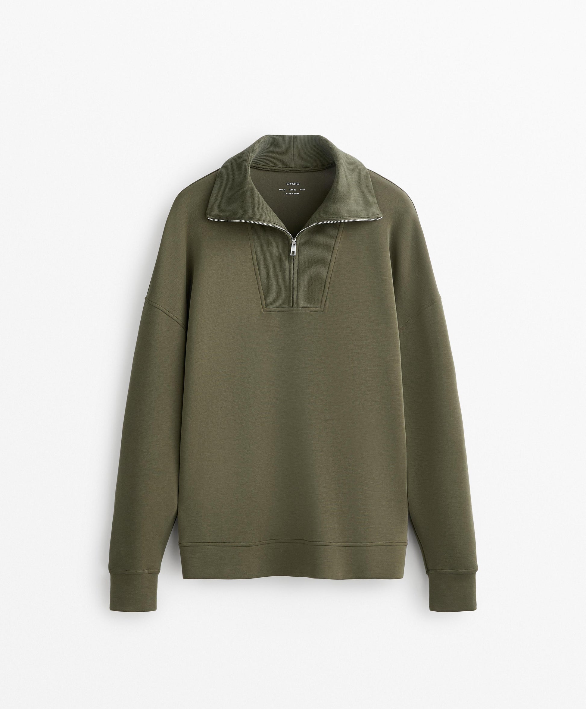 Ref. 3791/780/557 Long sweatshirt with a half-zip front fastening and rib details on the chest. With ribbed cuff details on the sleeves. Breathable fabric made with modal, with an extra soft feel.Materials and care instructions