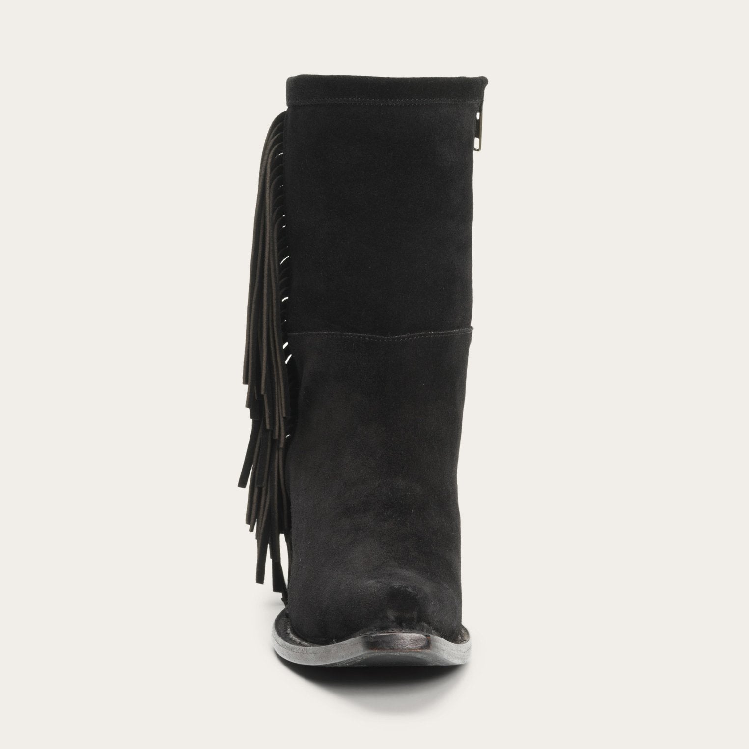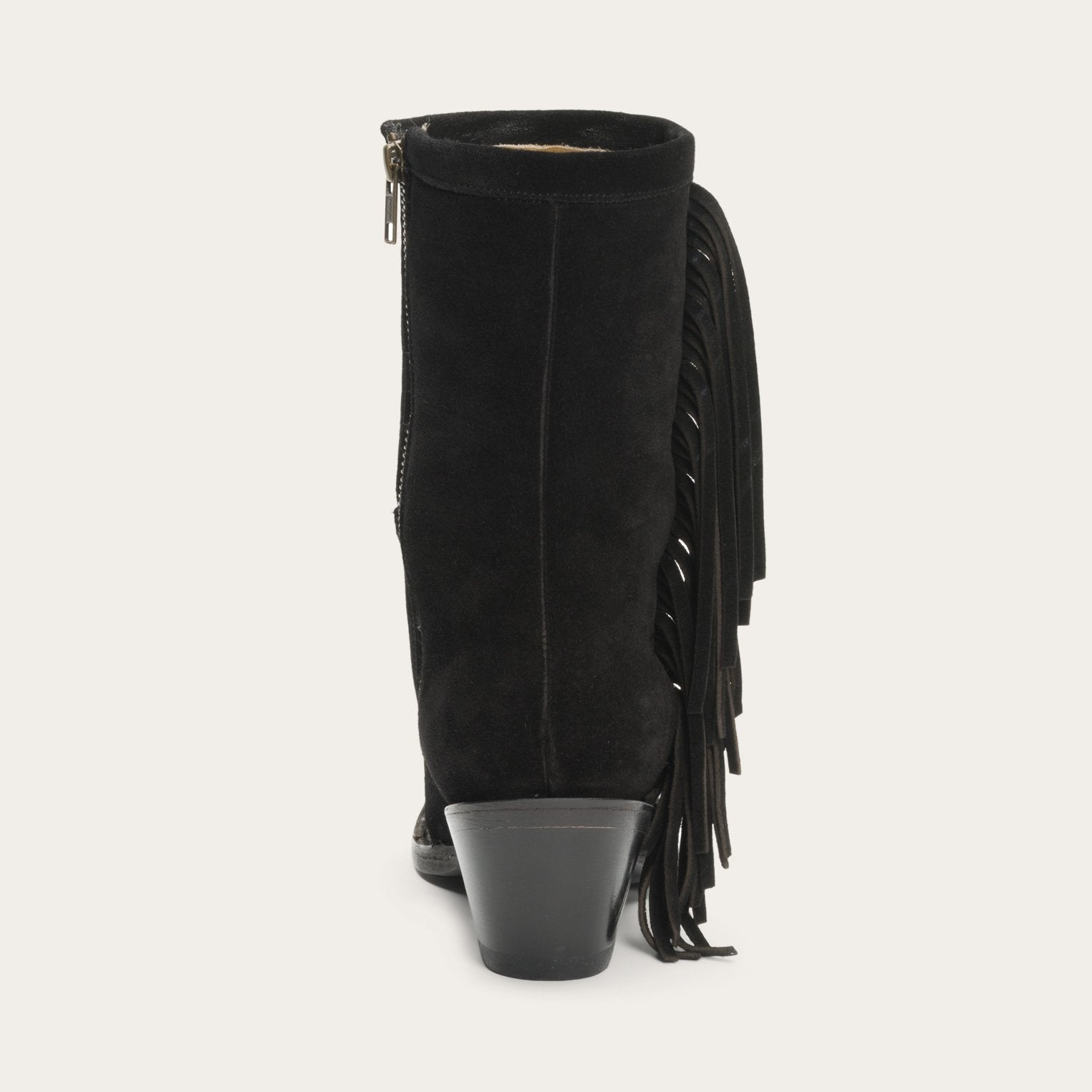 Hit the town with a mix of panache and cowgirl style. Handcrafted by It's legendary bootmakers from vintage-finished suede. Features include angle fringes, cushioned insoles, premium brass nails and hand-driven lemonwood pegs that enable the boot to withstand the elements by expanding and contracting with any moisture the boot may encounter. Each pair is stitched and tooled by hand to ensure absolute comfort and performance. Frontier-tough, they conform to the wearer over time for years of reliable service. A classic addition to any wardrobe, these boots are a fitting companion for anyone with a strong appreciation for objects that are made well and get better with age.