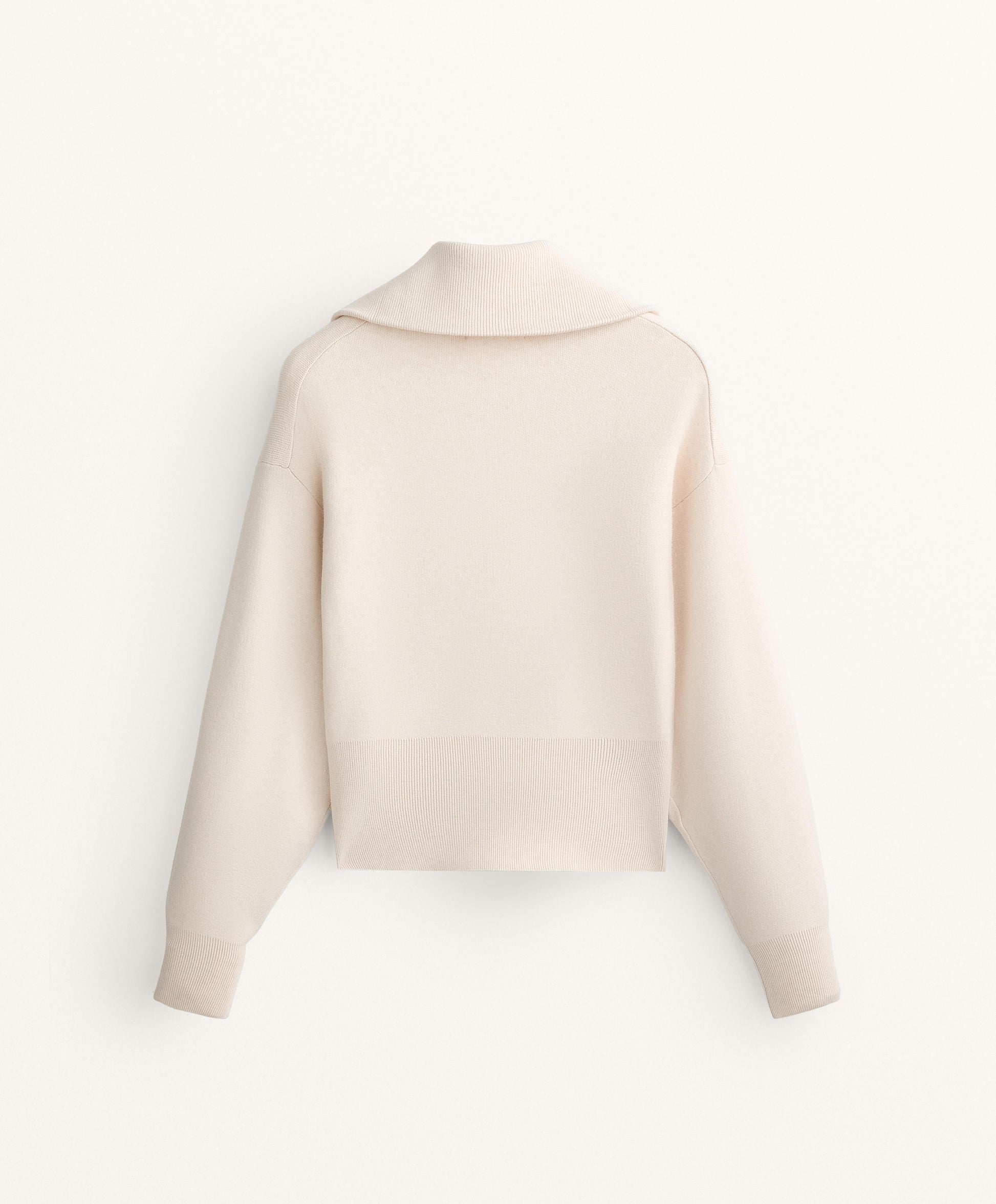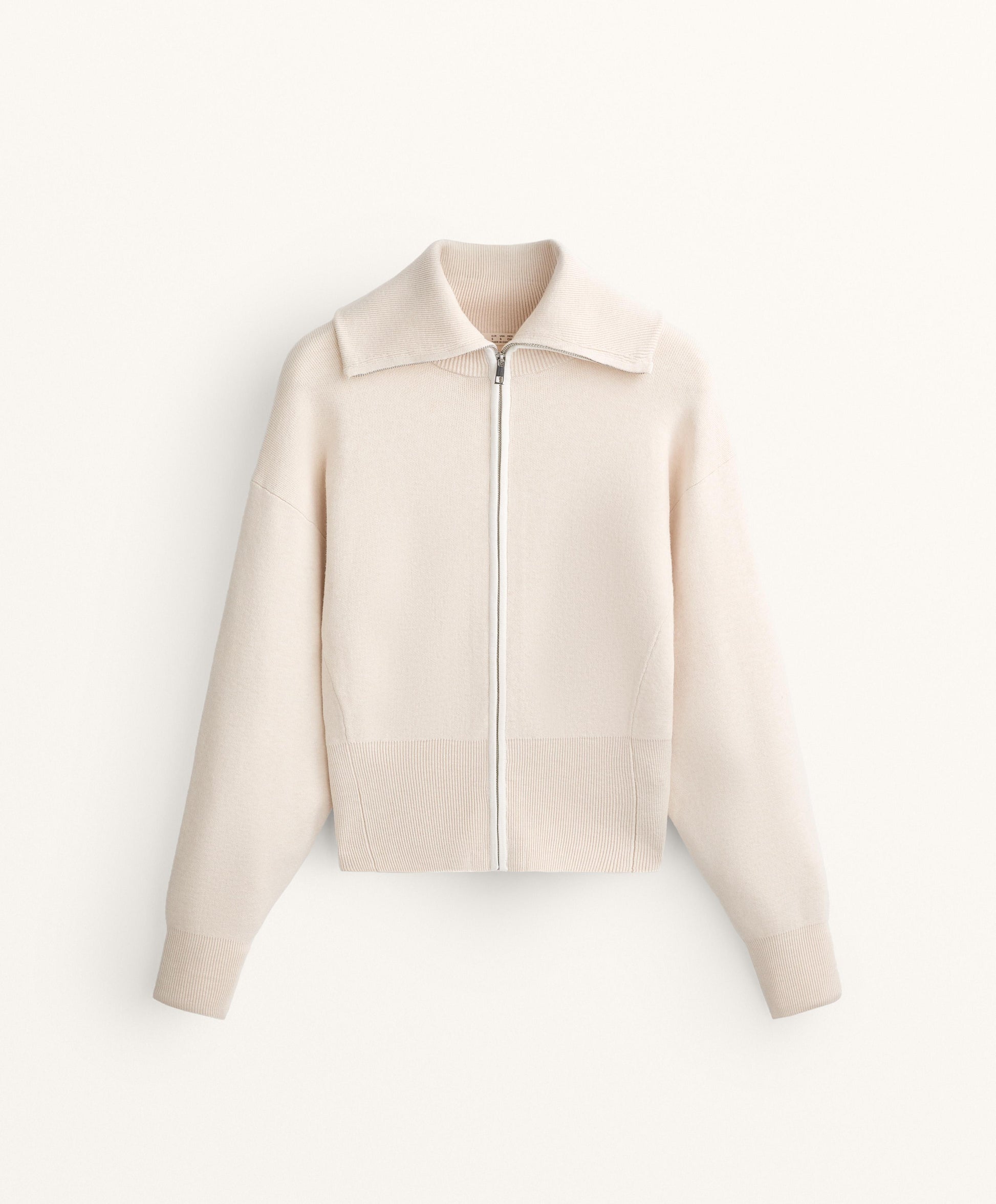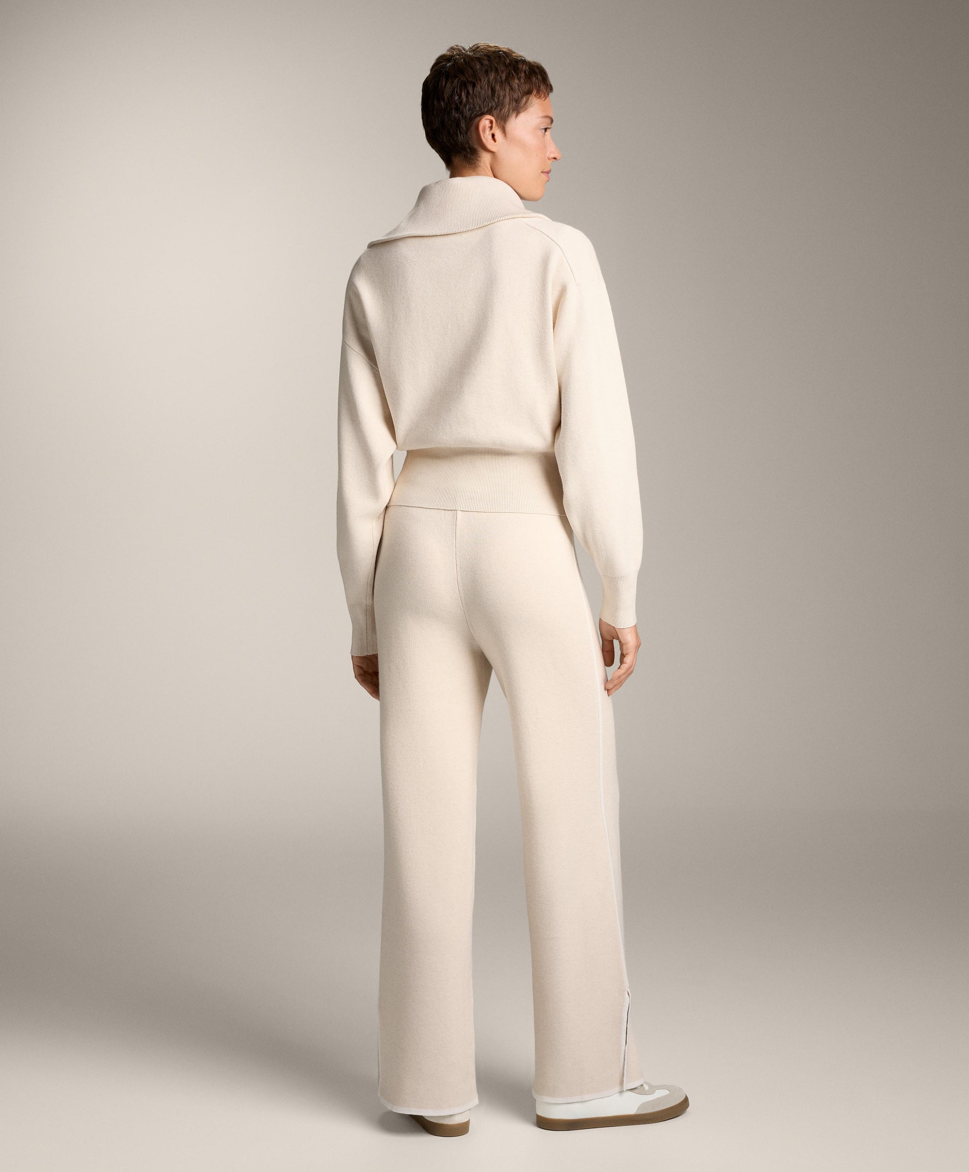 Ref. 3488/880/153 Knit jacket with high collar and front zip fastening. Featuring contrasting piping detail on the zip. Fitted waist and rib detail on cuffs and hem.Materials and care instructions