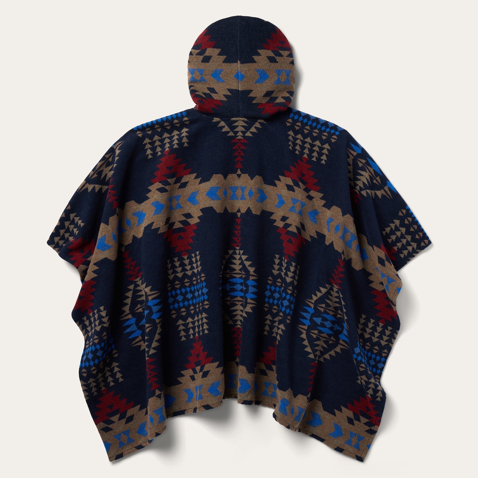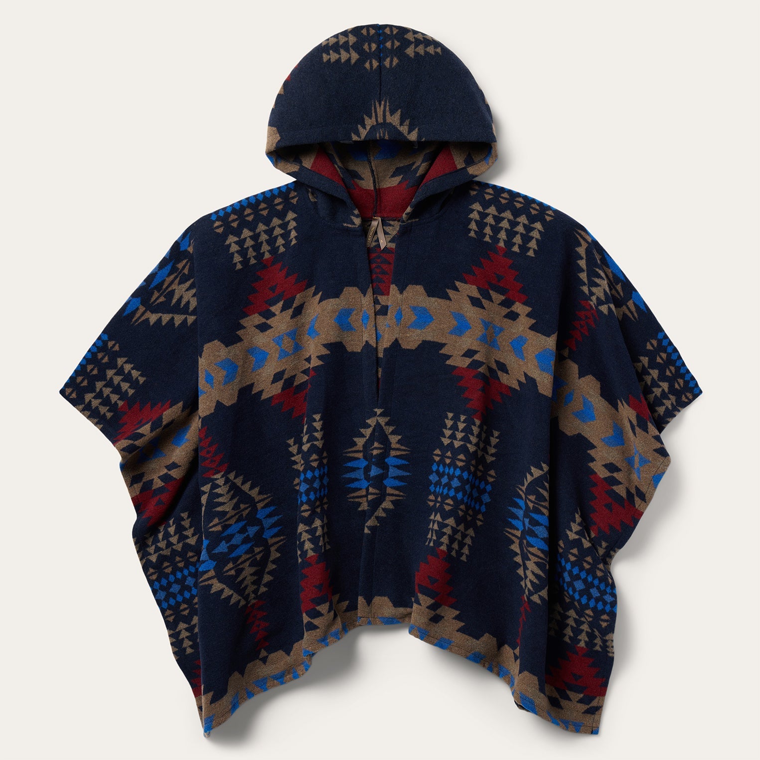 This hooded, southwestern-inspired blanket wrap is crafted from a hearty wool blend, making it the perfect cozy companion for cool frontier mornings or chilly nights on the town.
