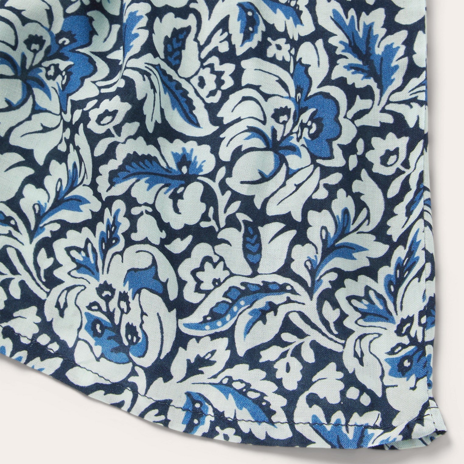 This sleeveless prairie dress is crafted from soft, lightweight 100% rayon, featuring a richly colored allover Indigo Tapestry print. The classic, frontier-inspired style features a ruffled collar with self-covered button closure and keyhole, combined with an elastic waist and ruffled hemline. Fully lined for comfort and ease of movement, it has a relaxed elegance perfect for casual day or evening wear.