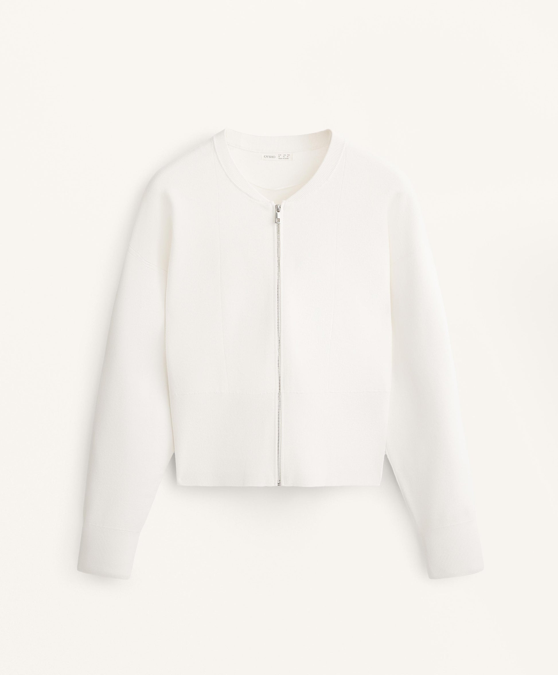 Ref. 3856/695/251 Knit bomber jacket with front zip fastening. Rib detail on the cuffs and hem.Materials and care instructions