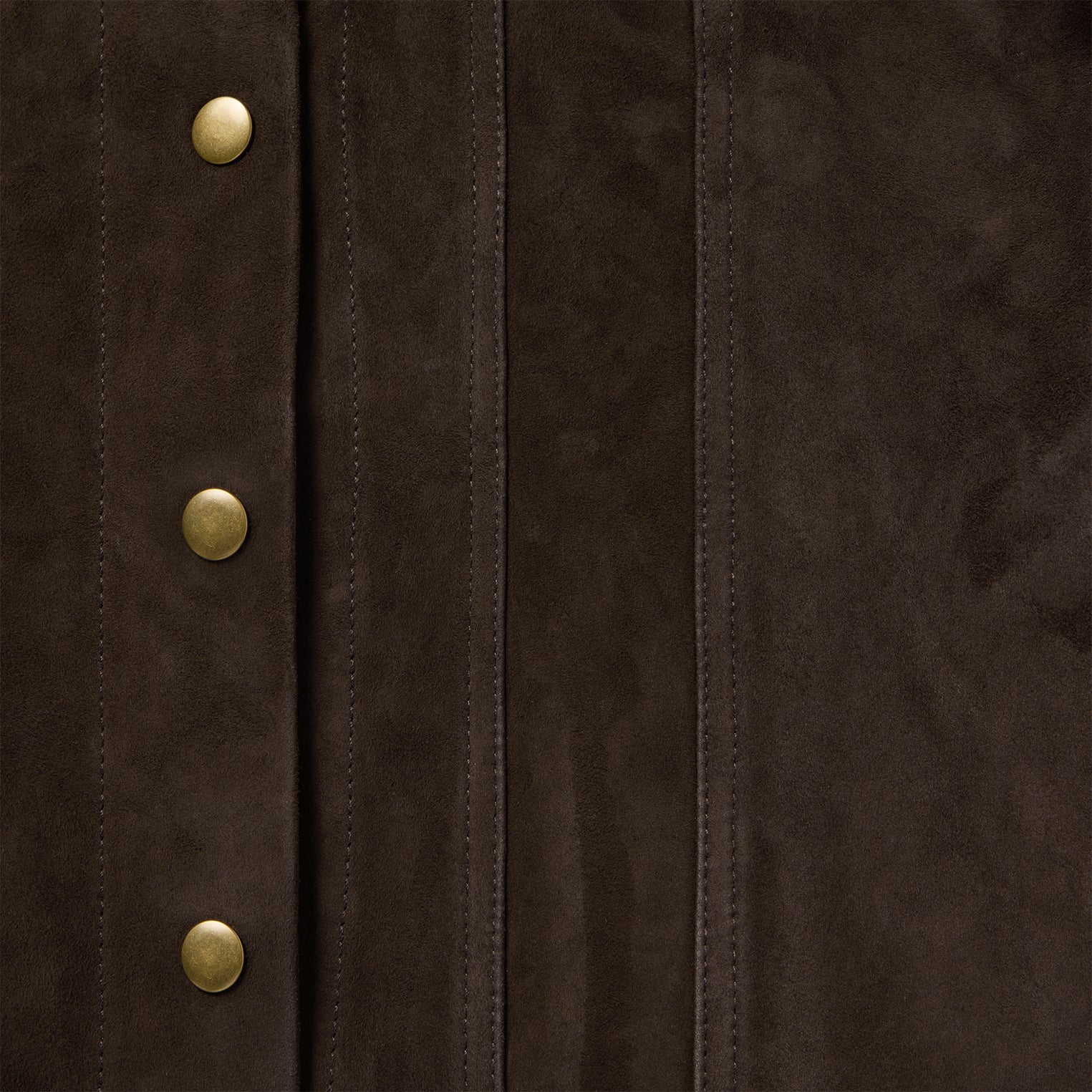 This western-style shirt jacket is crafted from soft, durable 100% lambskin suede and features jean-jacket-style seaming on its front and back. It has straight front and back yokes, a full front metal snap closure, and single point patch pockets. A statement-making, versatile piece that can be dressed up or down, it's cut with an easy, flattering fit that allows for all-day comfort and freedom of movement.