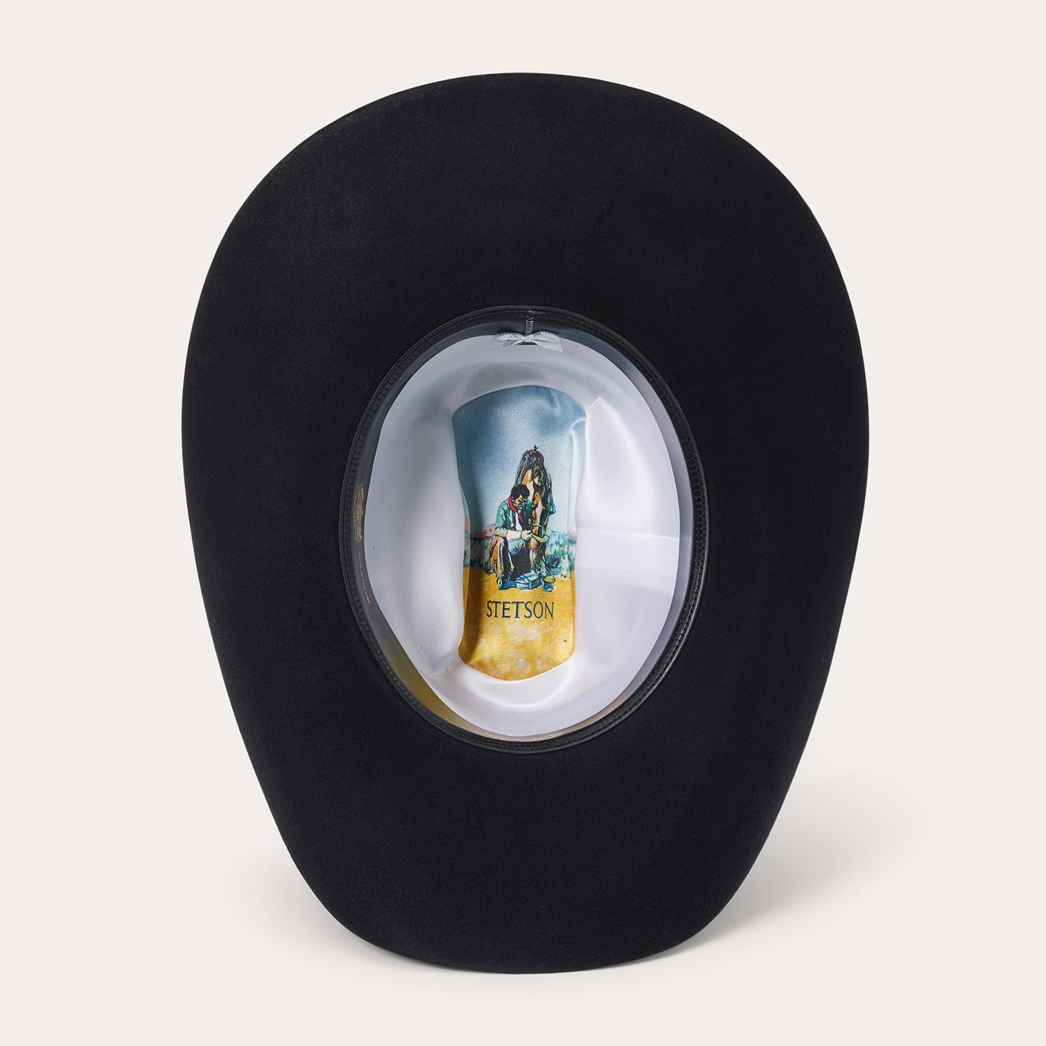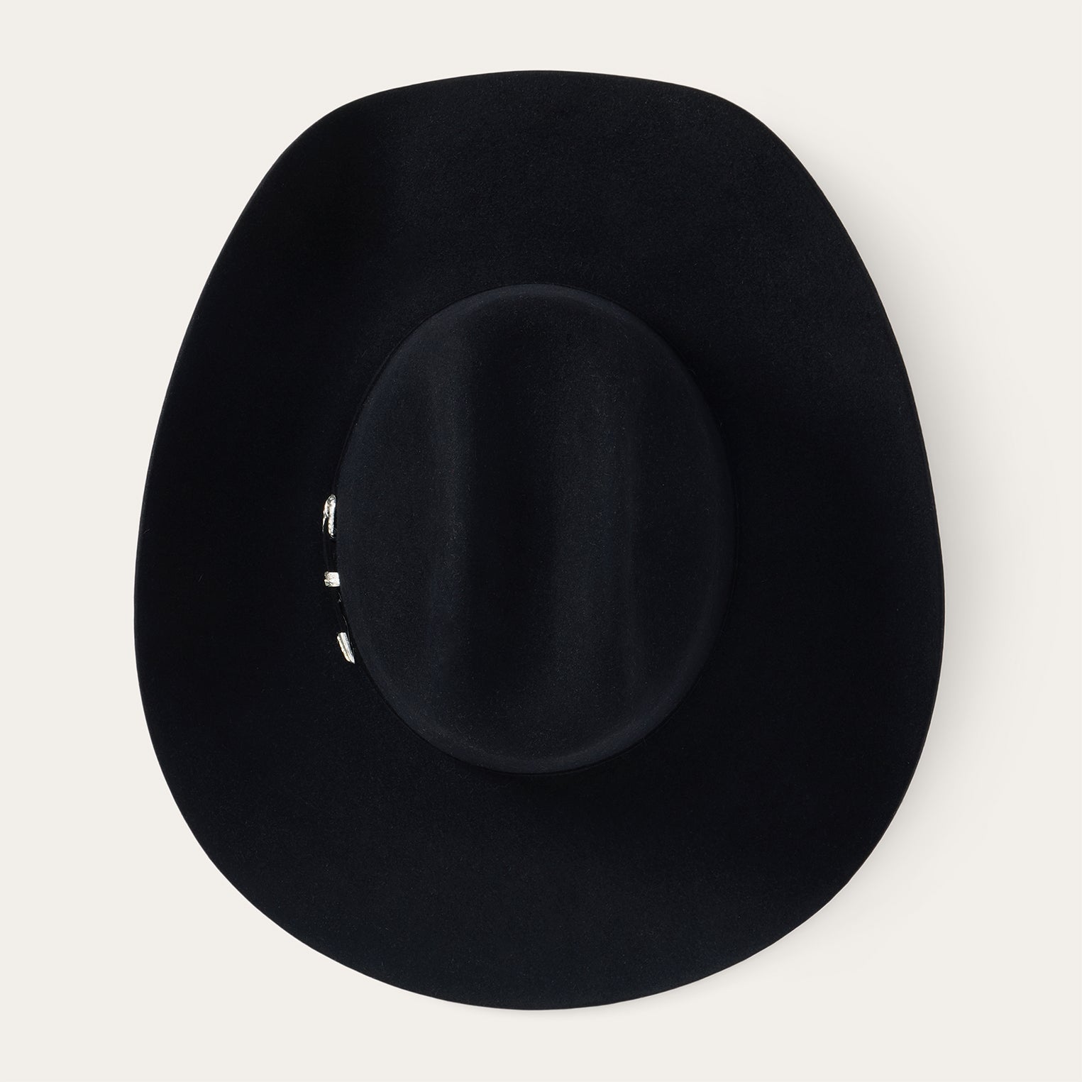 The Lariat combines legendary It quality and classic western style in one timeless package. It's crafted from our proprietary 5X fur felt, which is prized for its durability, and, as with all hats that come out of our factory in Texas, each Lariat is touched by more than 100 sets of hands during production, resulting in a hat that is designed and built to stand the test of time. This edition features a 4542 profile, which translates to 4 1/4" cattleman crown and 4 1/4" brim, and it's finished with a three-piece, silver-tone buckle set and matching self-felt hatband. A handsewn genuine leather sweatband and full satin liner provide a time-tested fit and premium comfort.
