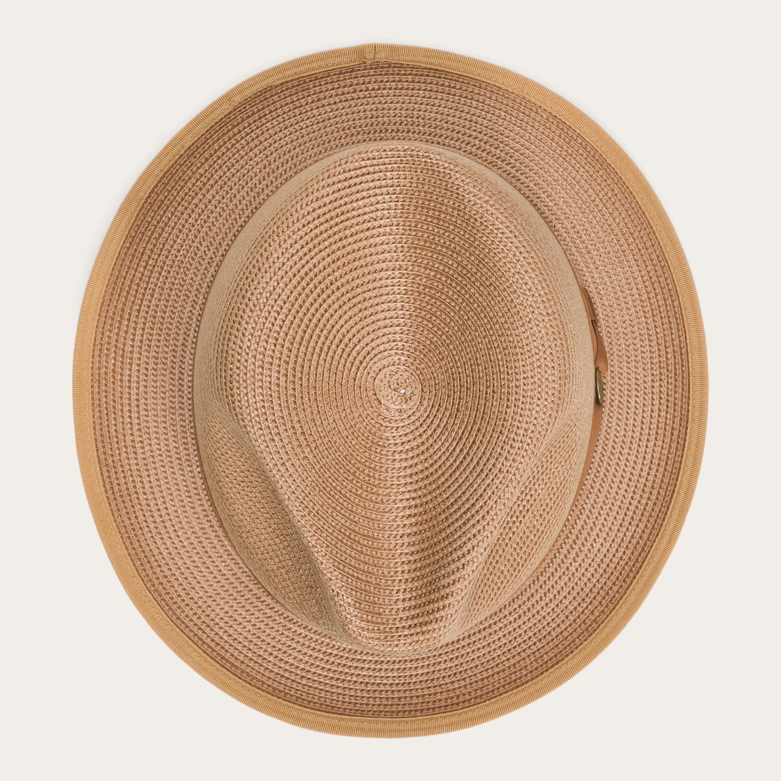This timeless straw fedora is handwoven one strand at a time from high-quality 100% Milan straw. Its classic profile features a 4" pinch front crown with a 2" bound edge brim, and it's fitted with a grosgrain band and It hat pin. Lightweight and durable, it has a firm finish crown to retain its shape, a flexible brim that can be snapped up or down, and a cotton sweatband for a cool, comfortable, all-day fit.