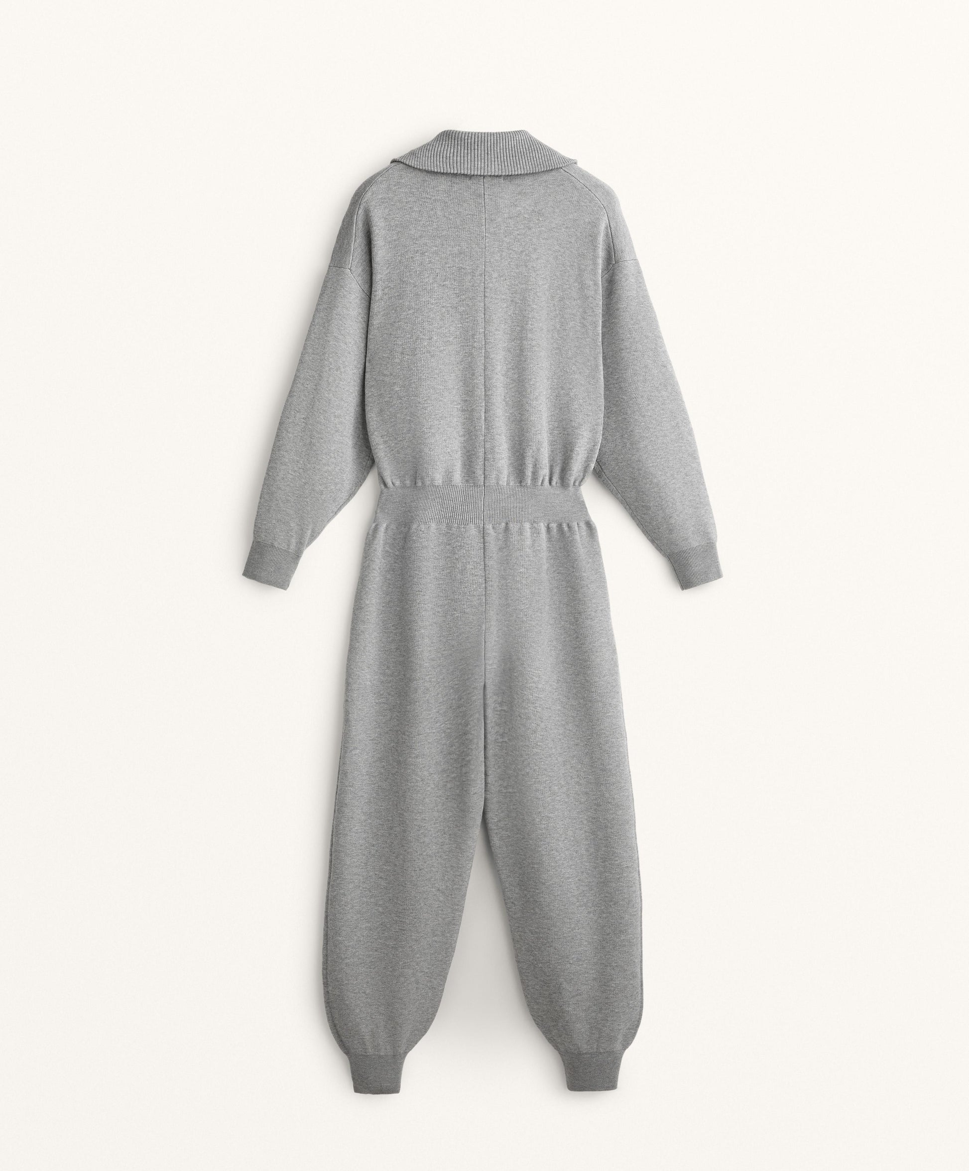 Ref. 3426/880/809 Long jumpsuit with long sleeves and a high neck with a half-zip front fastening. Features elastic detailing that adjusts to the waist. Knit fabric with rib detailing at the waist, neck, cuffs and hem.Materials and care instructions