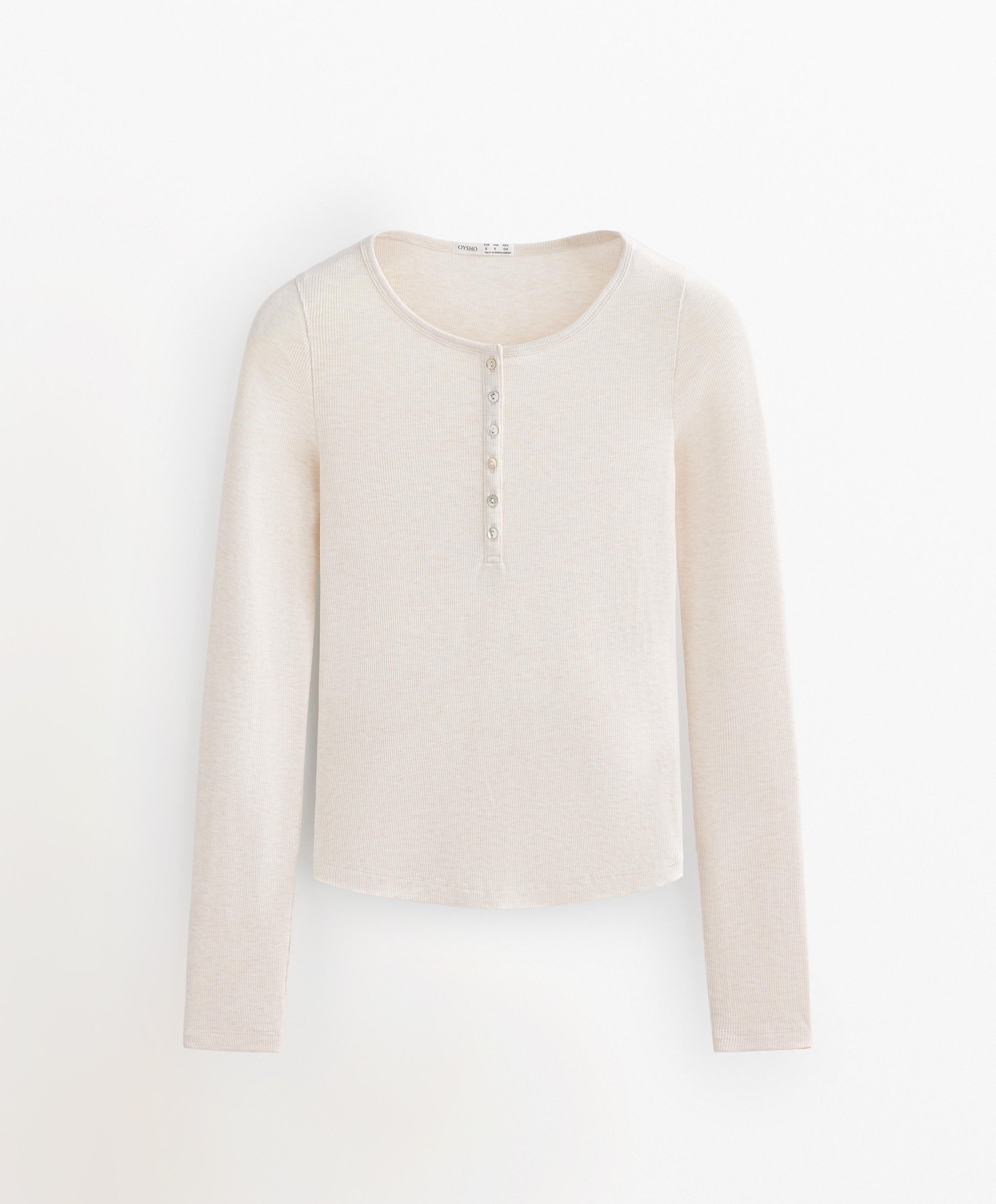 Ref. 0648/662/774 Long-sleeve T-shirt with a closed round neck and buttons down to chest height. Rib fabric made with cotton and modal.Materials and care instructions