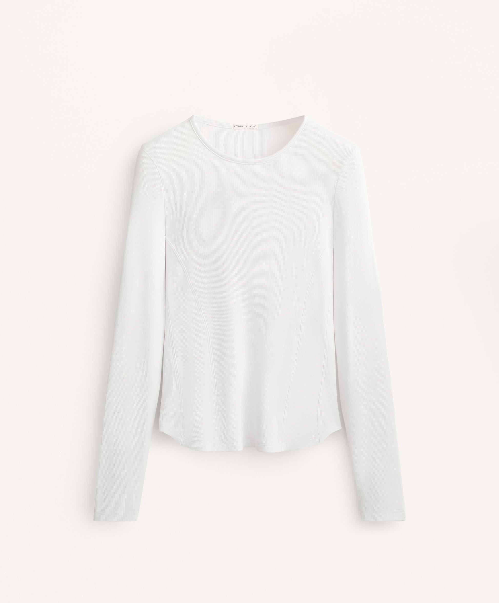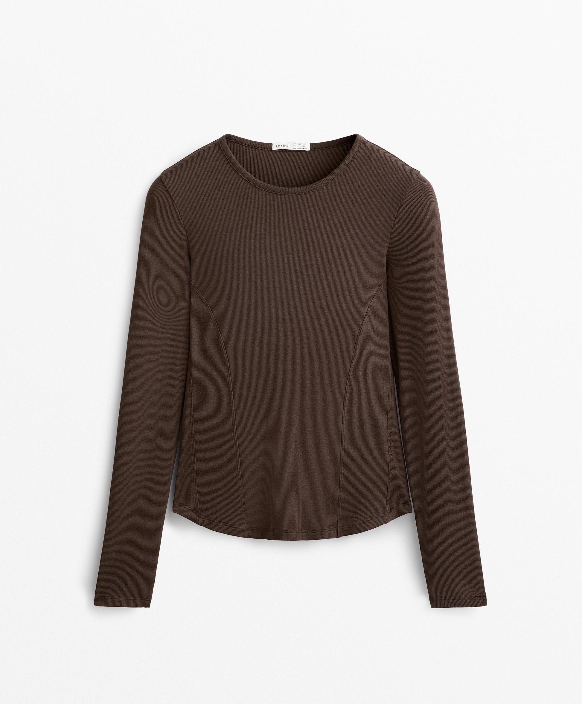 Ref. 3109/662/251 Fitted long sleeve T-shirt with a round neck. Features seam detailing on the side. Rib knit fabric made with cotton and modal.Materials and care instructions